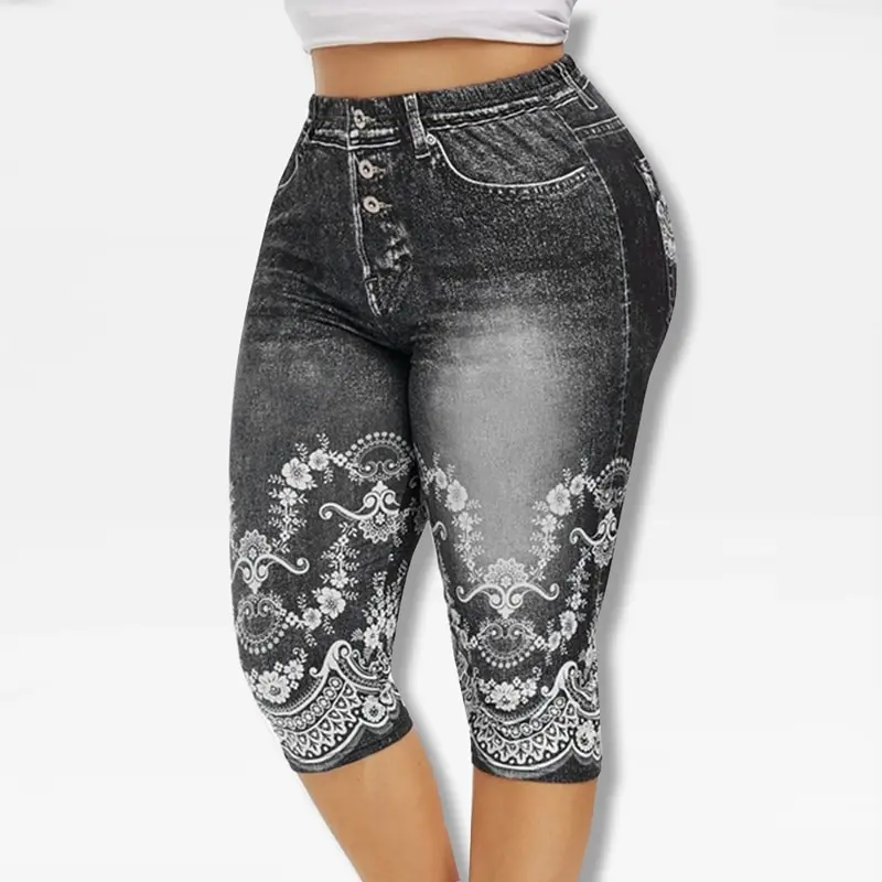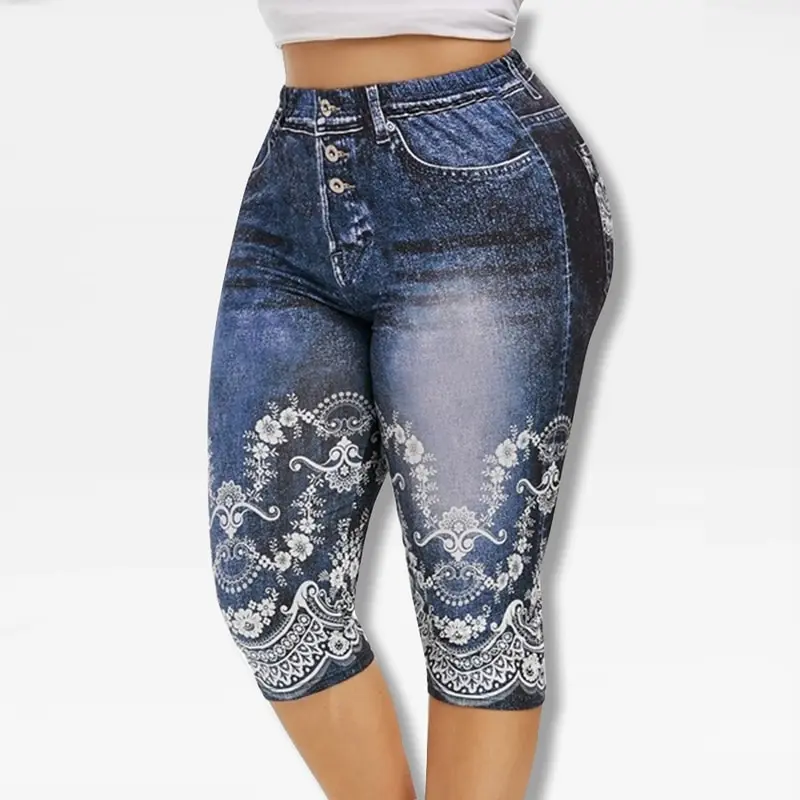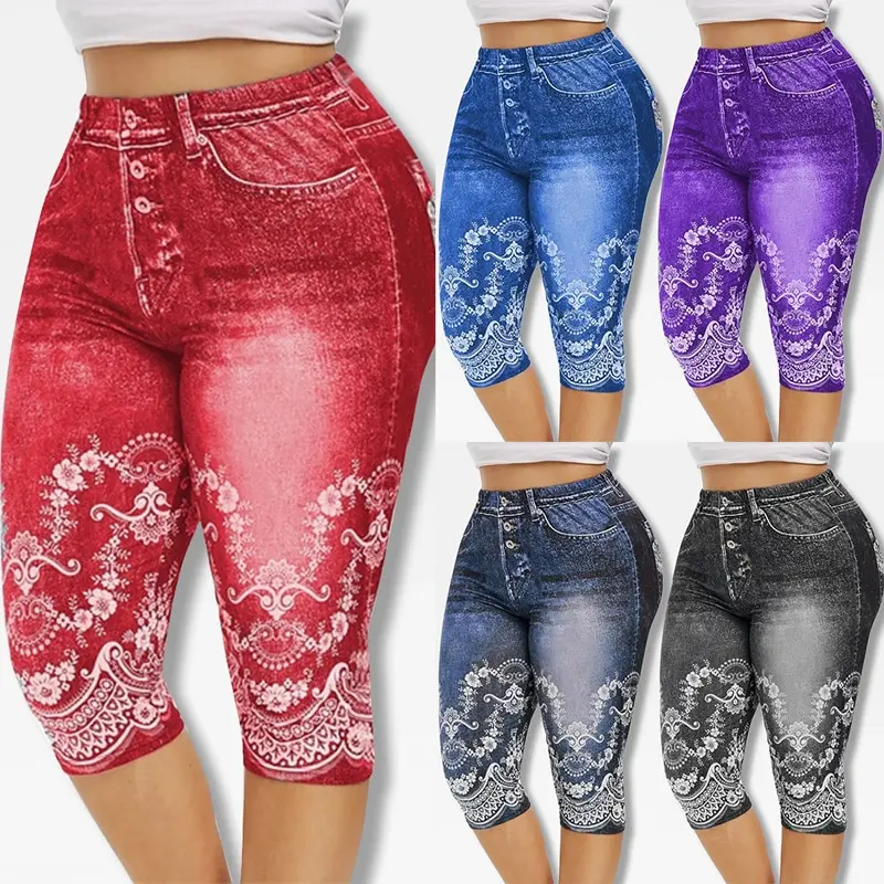 Обманки с джинсовые Йога штаны, 3 предмета в комплекте 4 Женские джинсовые леггинсы с высокой талией шорты с прорехами для маленьких капри штаны повышенной эластичности представлены Джеггинсы размера плюс 5XL