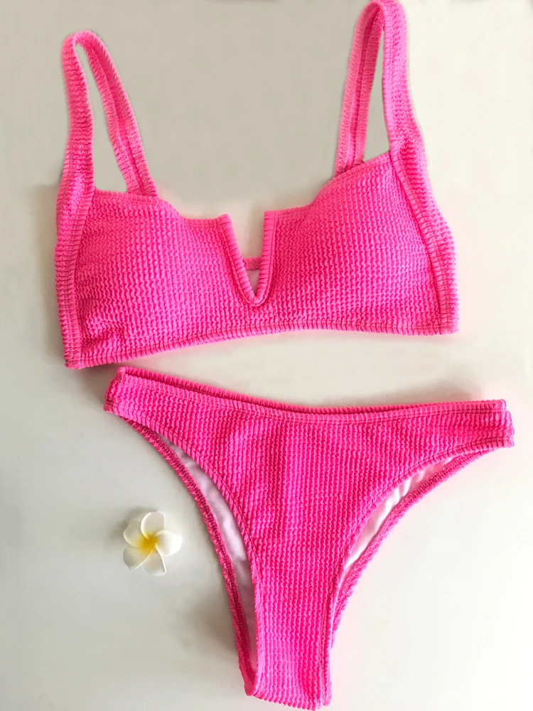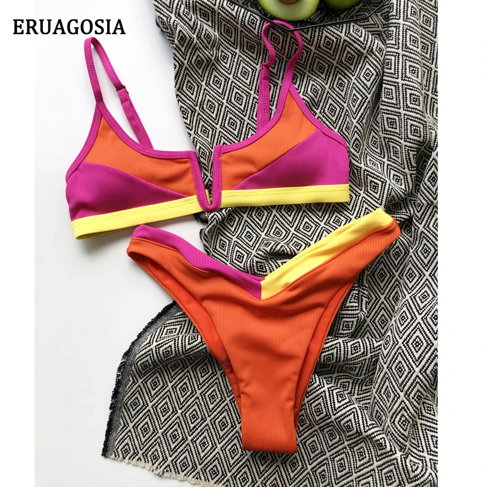 Сексуальное бикини 2021, женский купальник, стринги с высоким вырезом, V-образный бюстгальтер, комплект бикини, летний купальный костюм, женская пляжная одежда