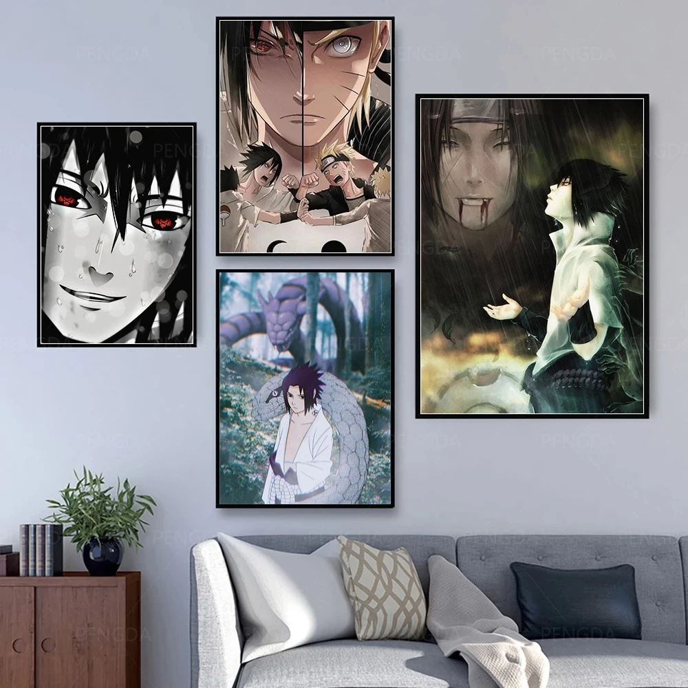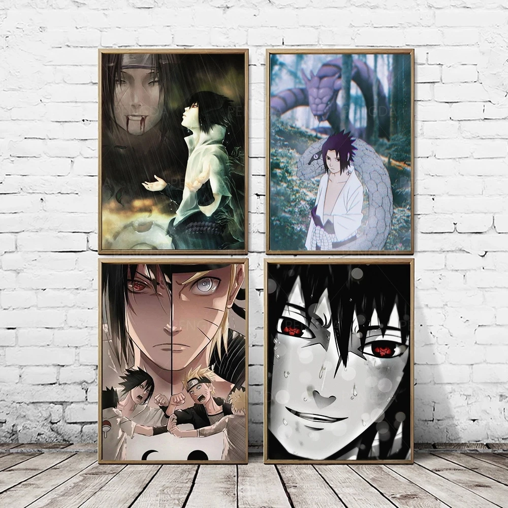 Картины на холсте, аниме, Саске Учиха, 4 шт., HD-печать, модульные японские классные картины, настенные картины в рамке