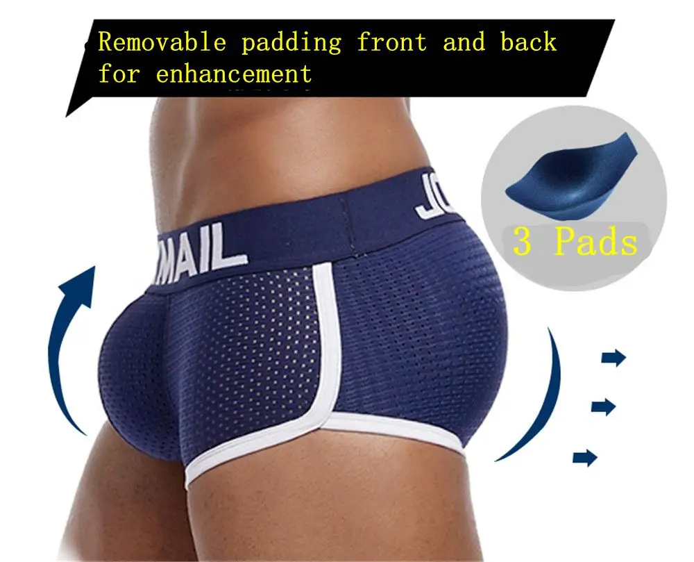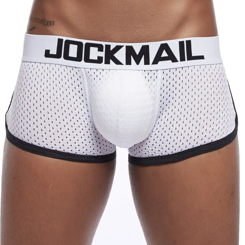 JOCKMAIL, мужское нижнее белье, боксеры, Сетчатое Мужское нижнее белье с подкладкой, боксеры с накладками на бедра, мужские боксеры Съемный пакет-ап с Push-Up (передняя выпуклость), который усиливает до 2 размеров Съемная задняя крышка, которая делает вашу задницу идеальной Очень удобная эластичная сетчатая ткань, более дышащая Сексуальная мужская коробка как спереди, так и сзади трусов имеет небольшие карманы, которые могут быть установлены с набедренными подушечками Мужские трусы-боксеры с подкладкой из мягкой сетки С низкой посадкой, эластичный широкий пояс, яркие цвета, дышащие мужские сексуальные боксеры Высококачественное Сетчатое Брендовое Мужское нижнее белье, трусы-боксеры, мужские трусы