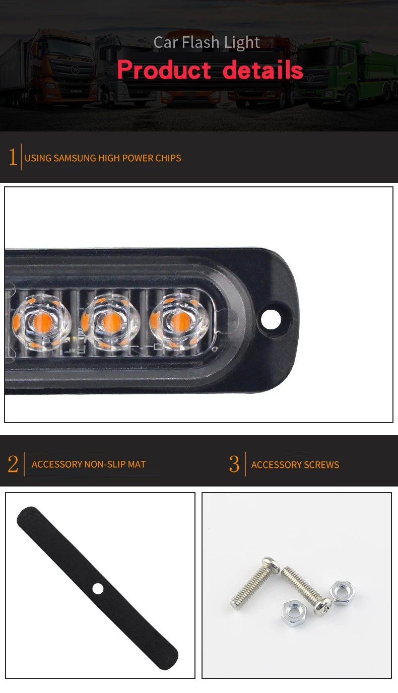 Аварийный светодиодный светильник для автомобиля Предупреждение мигающий, для пожарных, для скорой помощи, 12 В, 24 В