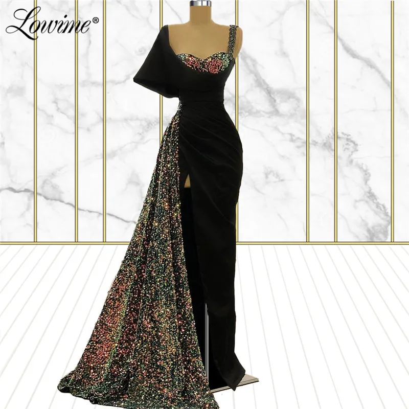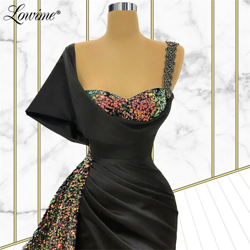 Черные вечерние платья Lowime в Дубае, женские вечерние платья с одним открытым плечом, вечерние платья 2021, атласное платье для выпускного вечера с кристаллами на заказ