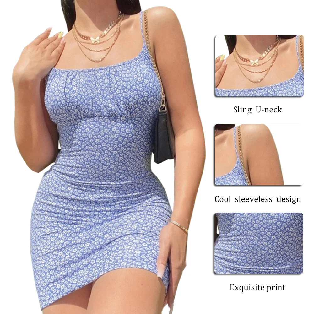 Модное сексуальное платье на бретелях, женское летнее милое облегаю...