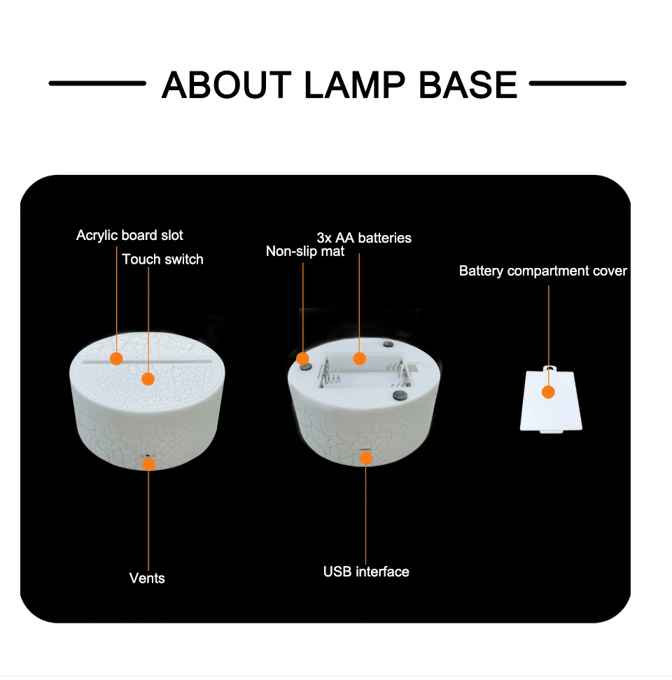 Обратите внимание: Посылка на акриловую доску не включает основание для трещины лампы. Если вам нужно черное или белое основание лампы, пожалуйста, нажмите на ссылку покупки ниже: Https://www.aliexpress.com/item/1005002637772806.html?spm=2114.12010615.8148356.3.402d165auynXDG