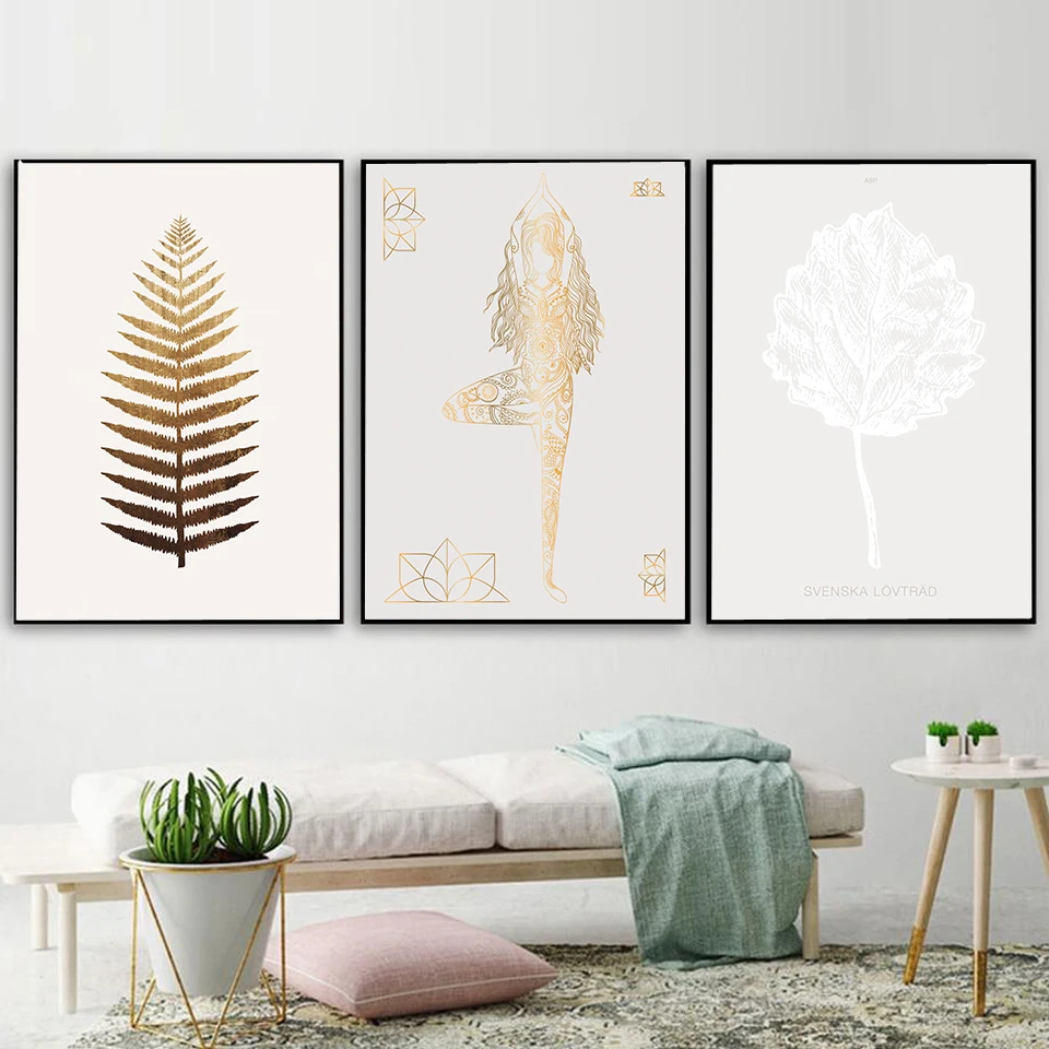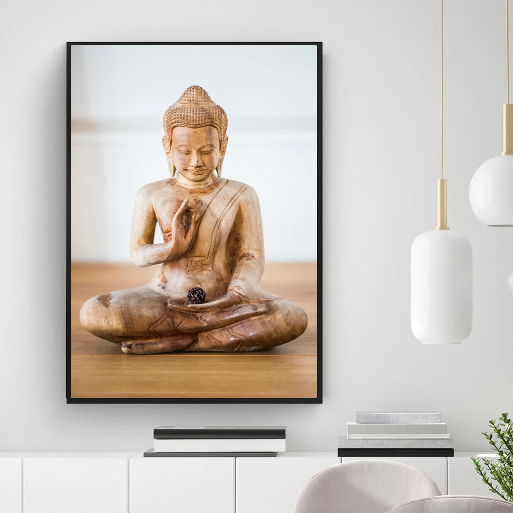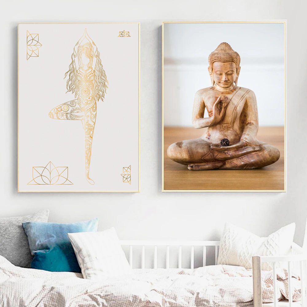 Плакат с статуей Дзен Будды, Золотой лист, Йога, холст, принты, минималистичный цветок, настенная живопись, буддизм, Современный домашний декор