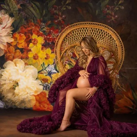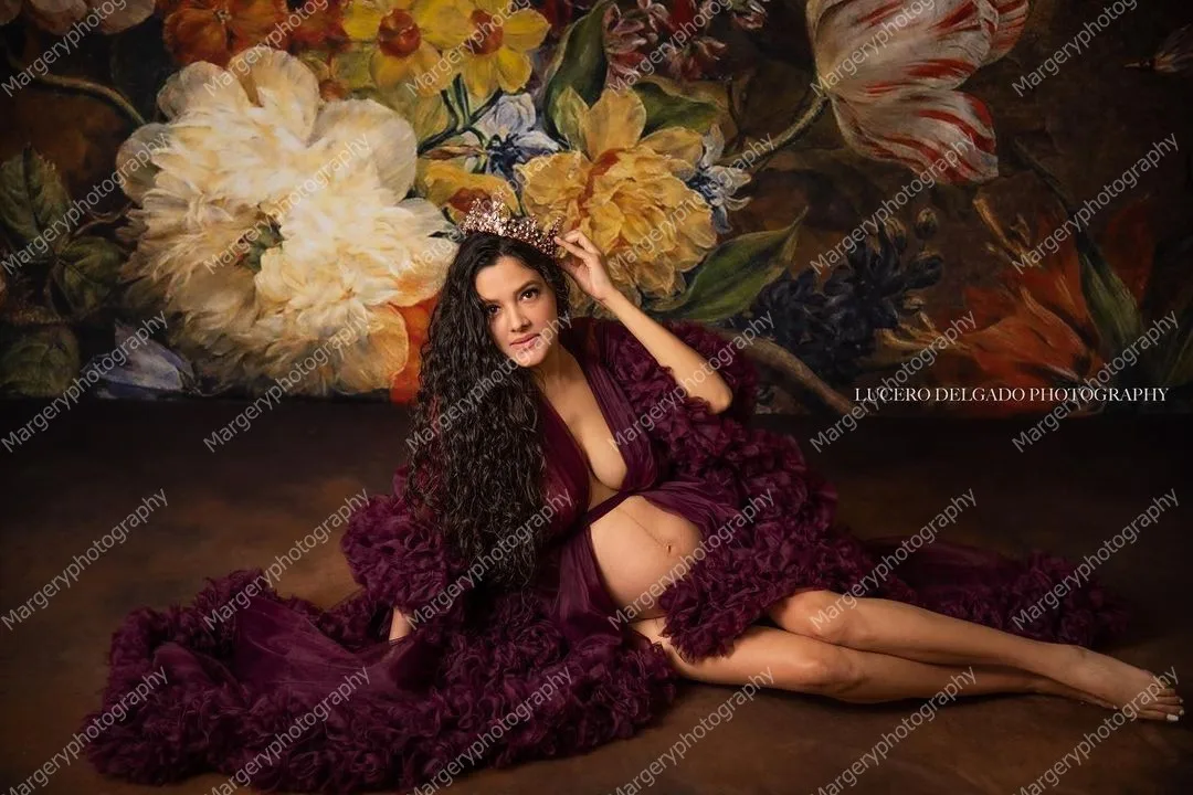 Пикантная обувь; Цвет фиолетовый; Тюль Беременность халаты одежда с длинным рукавом и оборками очень Пышное прозрачные смотреть через размера плюс свадебные средства ухода за кожей для будущих мам халат