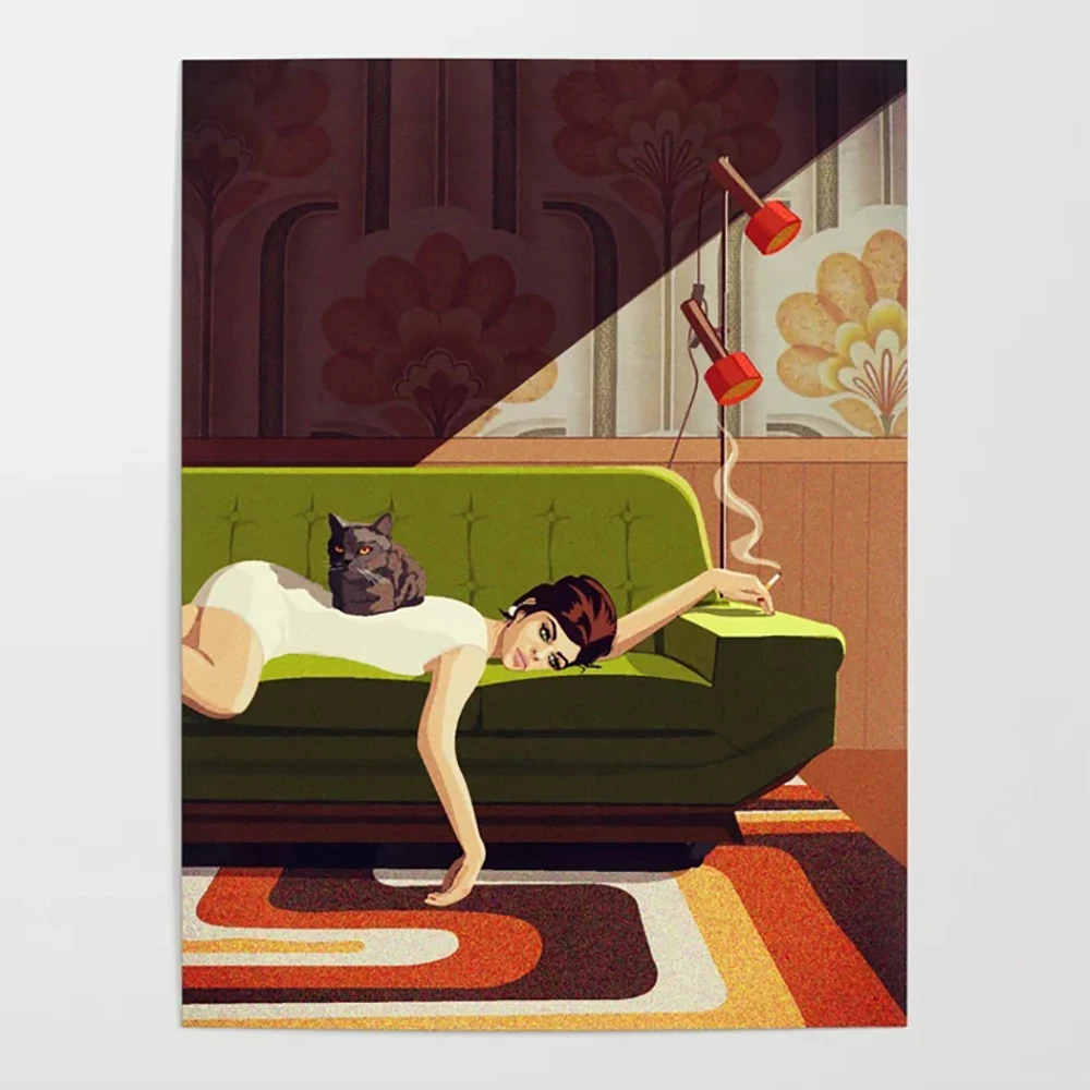 Настенная картина на холсте, домашняя игра ожидания, черная кошка, леди, декоративный постер с HD-печатью, Современная Модульная картина без рамки для гостиной