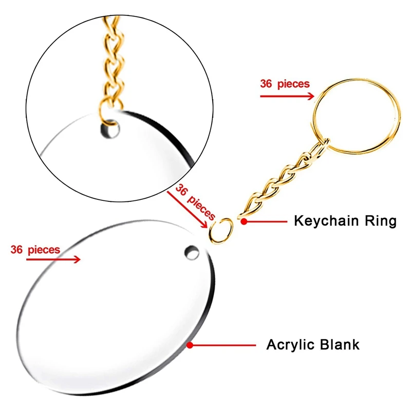 72 шт. акриловые заготовки для ключей, прозрачные заготовки для ключей с кольцами для ключей с отверстием для проектов и поделок «сделай сам»