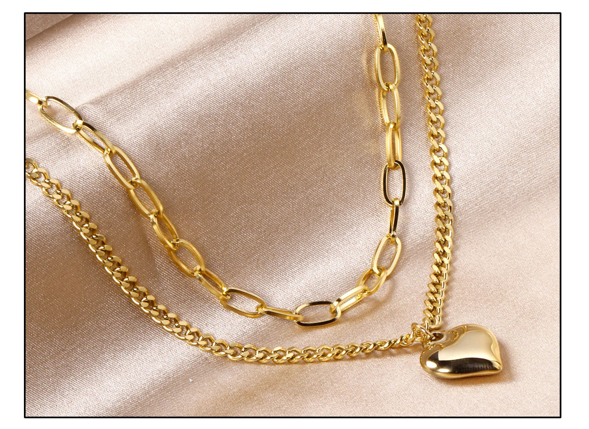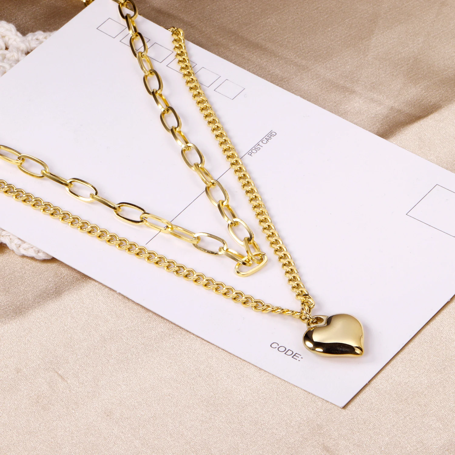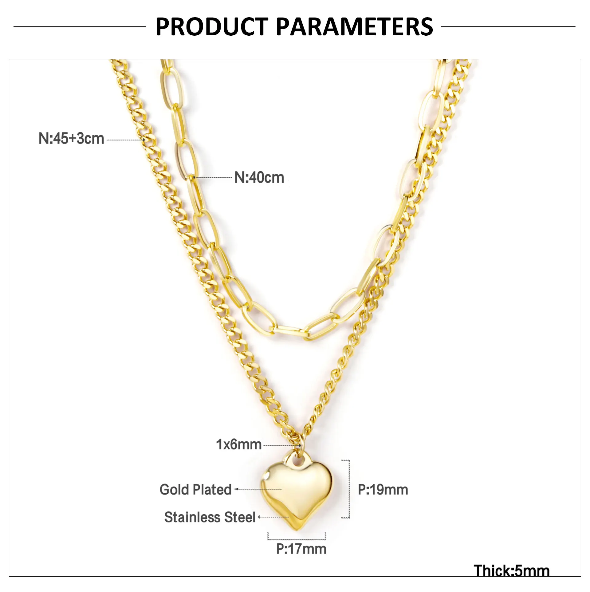 Кубинский чокер LUXUKISSKIDS, ожерелья, воротник, эффектные ювелирные изделия, подвески золотого цвета в форме сердца, двухслойные цепи