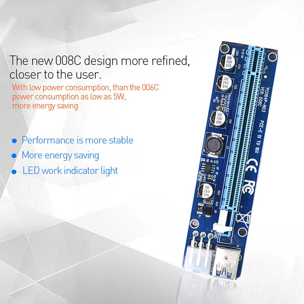Райзер-карта VER008 PCI Express PCI-E, 1X до 16X 60 см, кабель USB 3,0 с SATA на 4-контактный разъем питания