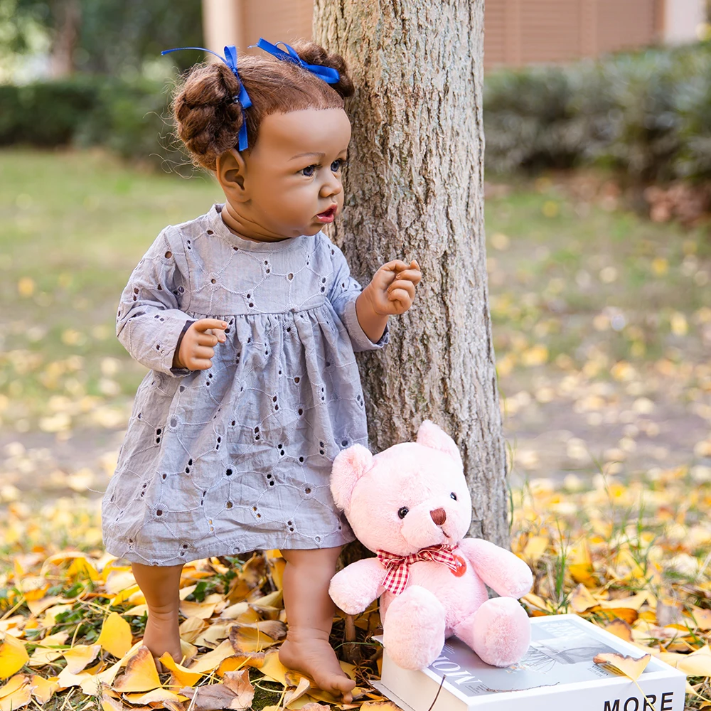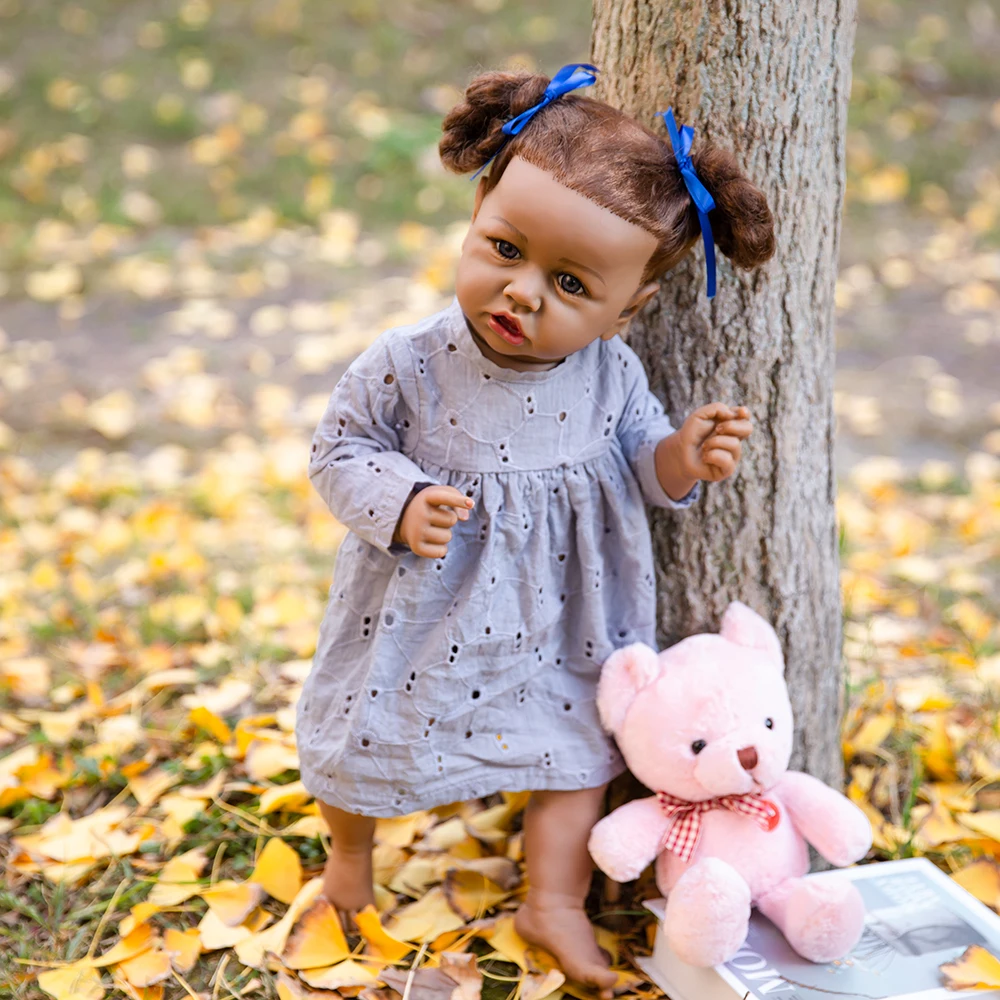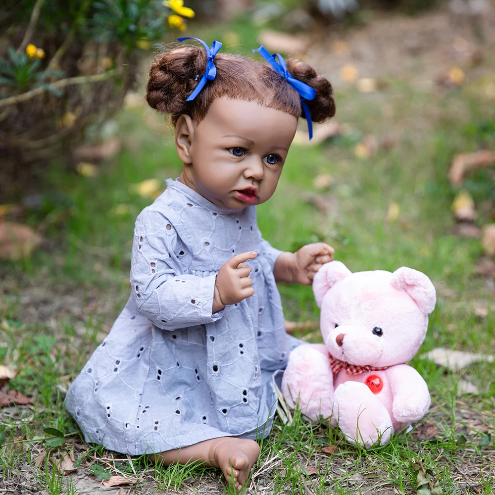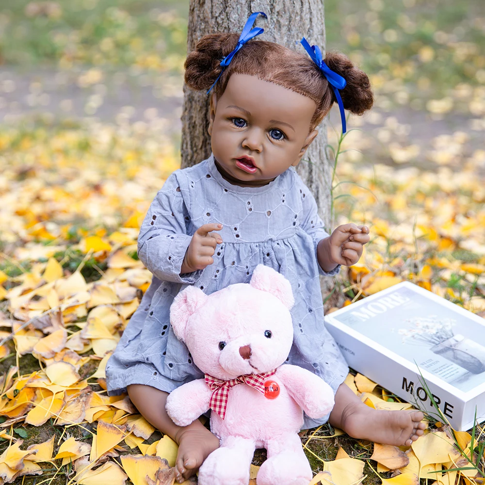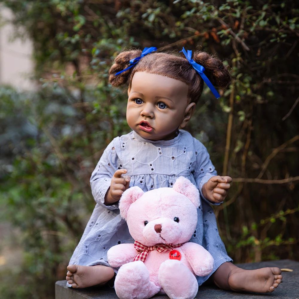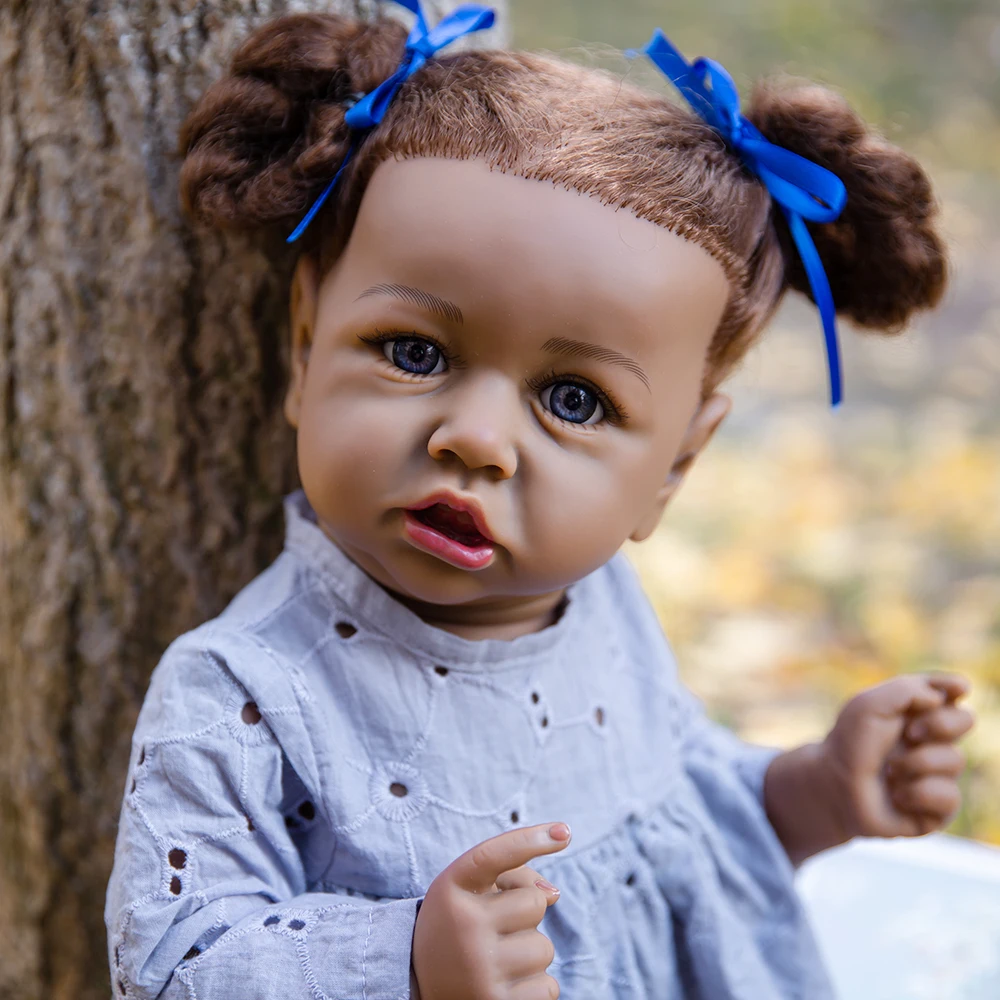 Кукла реборн афроамериканская, Реалистичная кукла-младенец, 23 дюйма, с голубой и коричневый глаза, полностью виниловая плюшевая игрушка