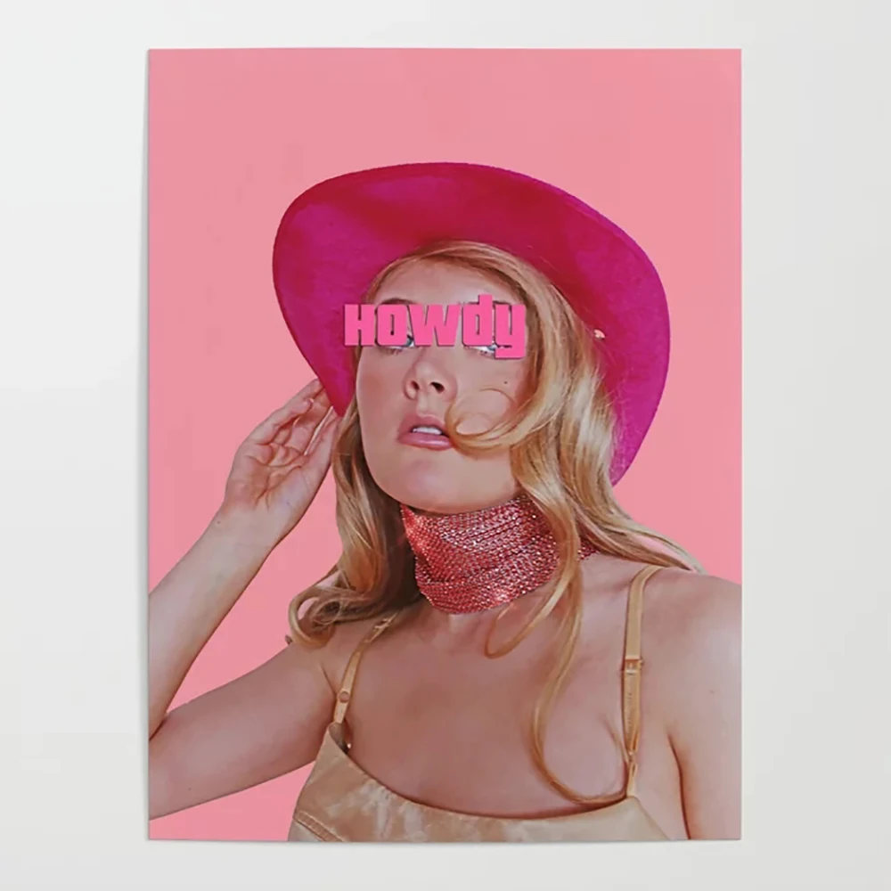 Настенные картины в ретро-стиле для девочек в розовом цвете, шапка из плотной ткани постеры для украшения дома Привет модульный Картины HD с принтами без рамы для Спальня