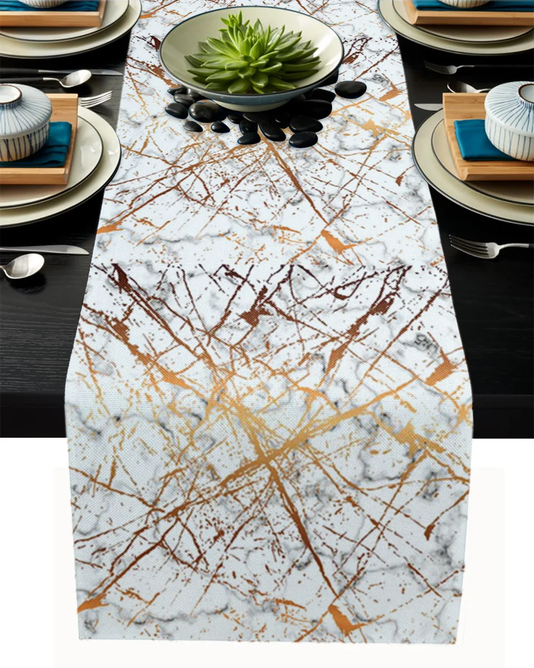 Роскошная скатерть под мрамор с золотыми трещинами для дня рождения, обеденный стол для отеля, Высококачественная скатерть из хлопка и льна
