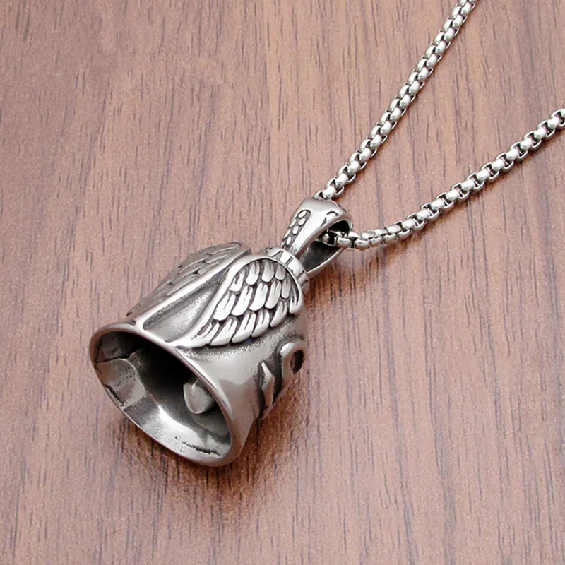 Винтажные высокое качество металла толстовка с капюшоном, надписью Angel и принтом крылышки ожерелье с колокольчиками очаровательные мужские рок вечерние ювелирные изделия