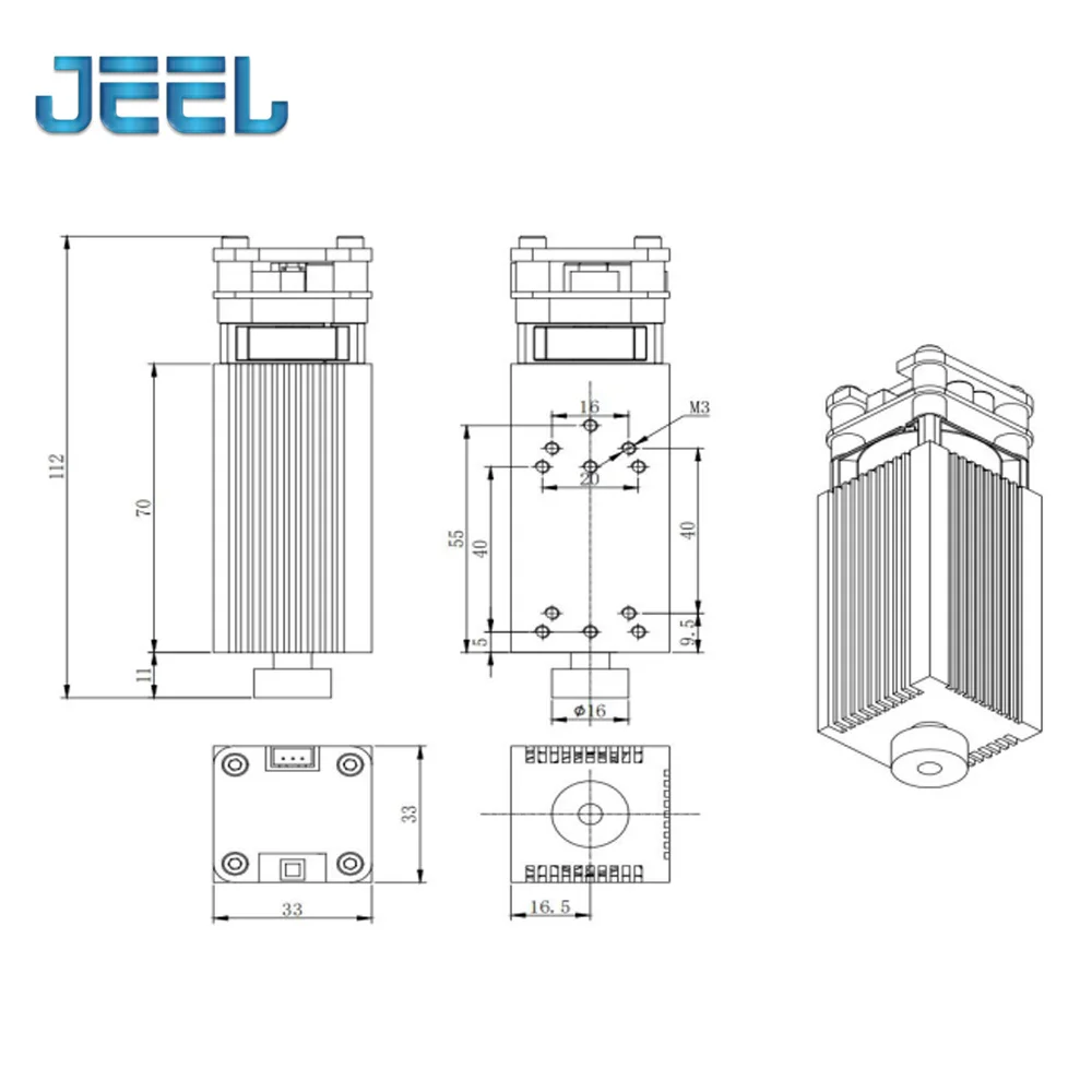 Фокусирующий синий лазерный модуль 0,5 Вт 2,5 нм 3,5 Вт 5,5 Вт нм 33 мм Лазерная гравировка и резка TTLPWM управление 12 В 5 А лазерная трубка