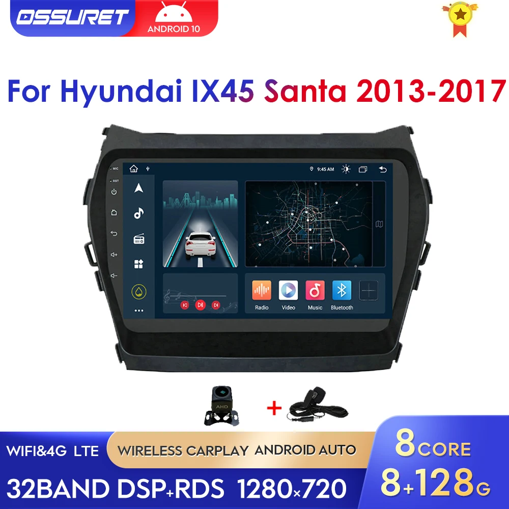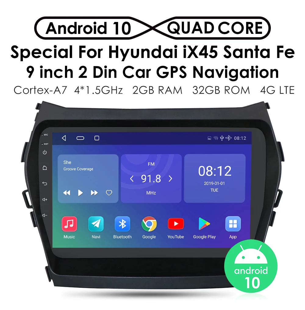 Автомагнитола 2DIN Android 10 для Hyundai IX45 Santafe 2013 - 2015 2017, GPS-навигация, стерео, мультимедиа, Wi-Fi, 9 дюймов, Bluetooth
