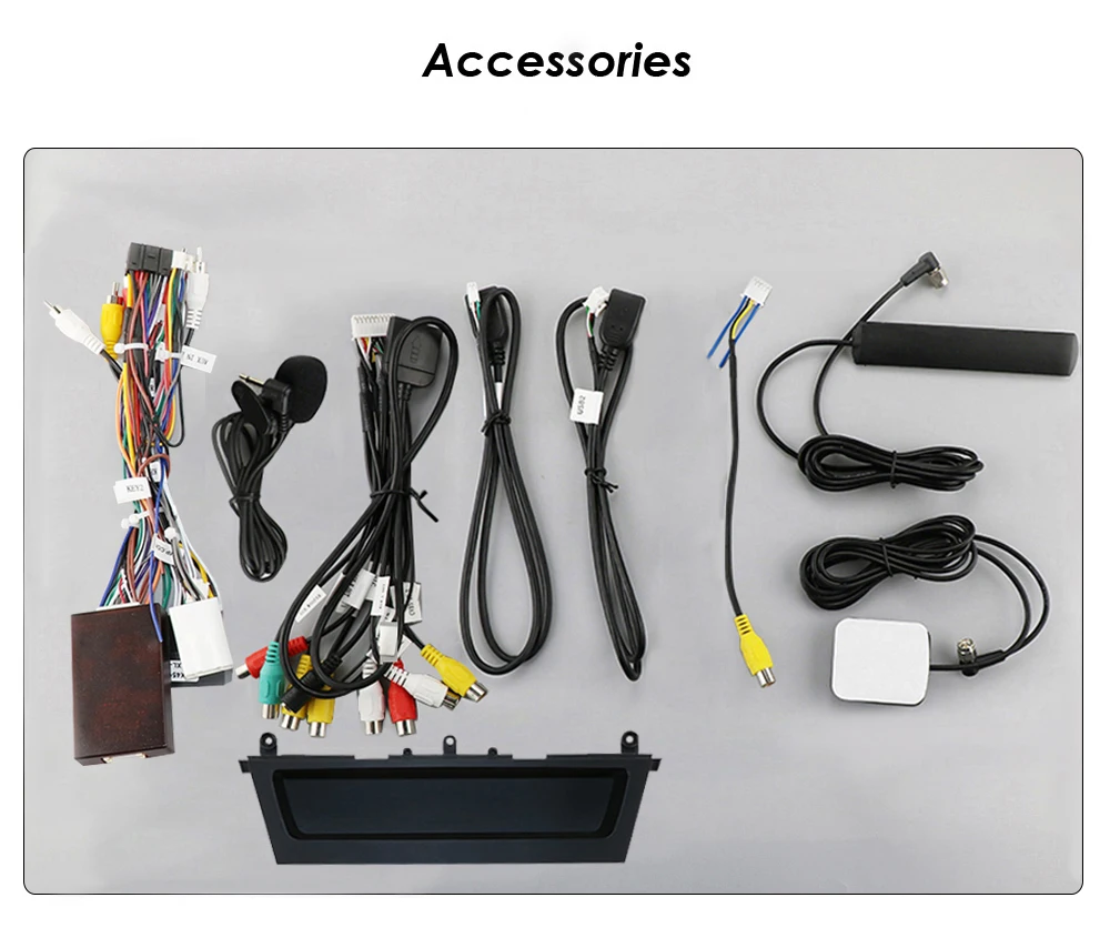 Стерео поставляется с аксессуарами, как показано на изображении аксессуаров, если вам нужен другой провод или аксессуары для установки, вам нужно купить отдельно.