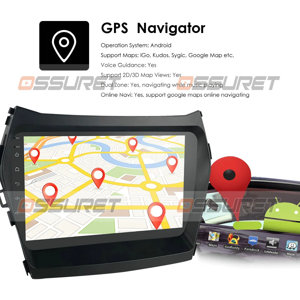 Автомагнитола 9 дюймов 2 Din Android для Hyundai IX45 Santafe 2013 ...