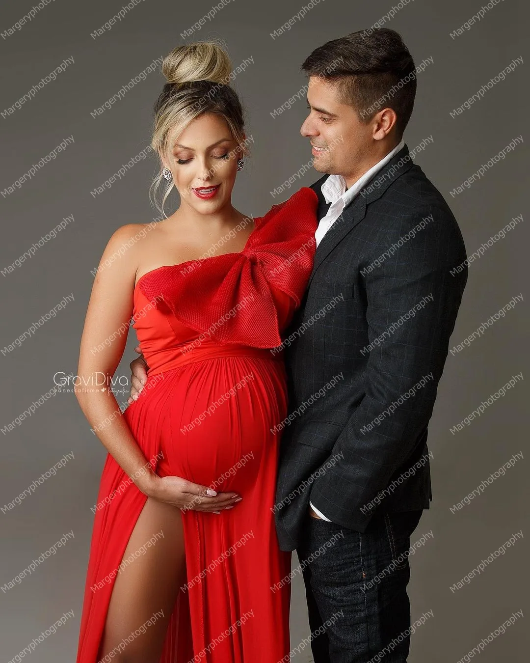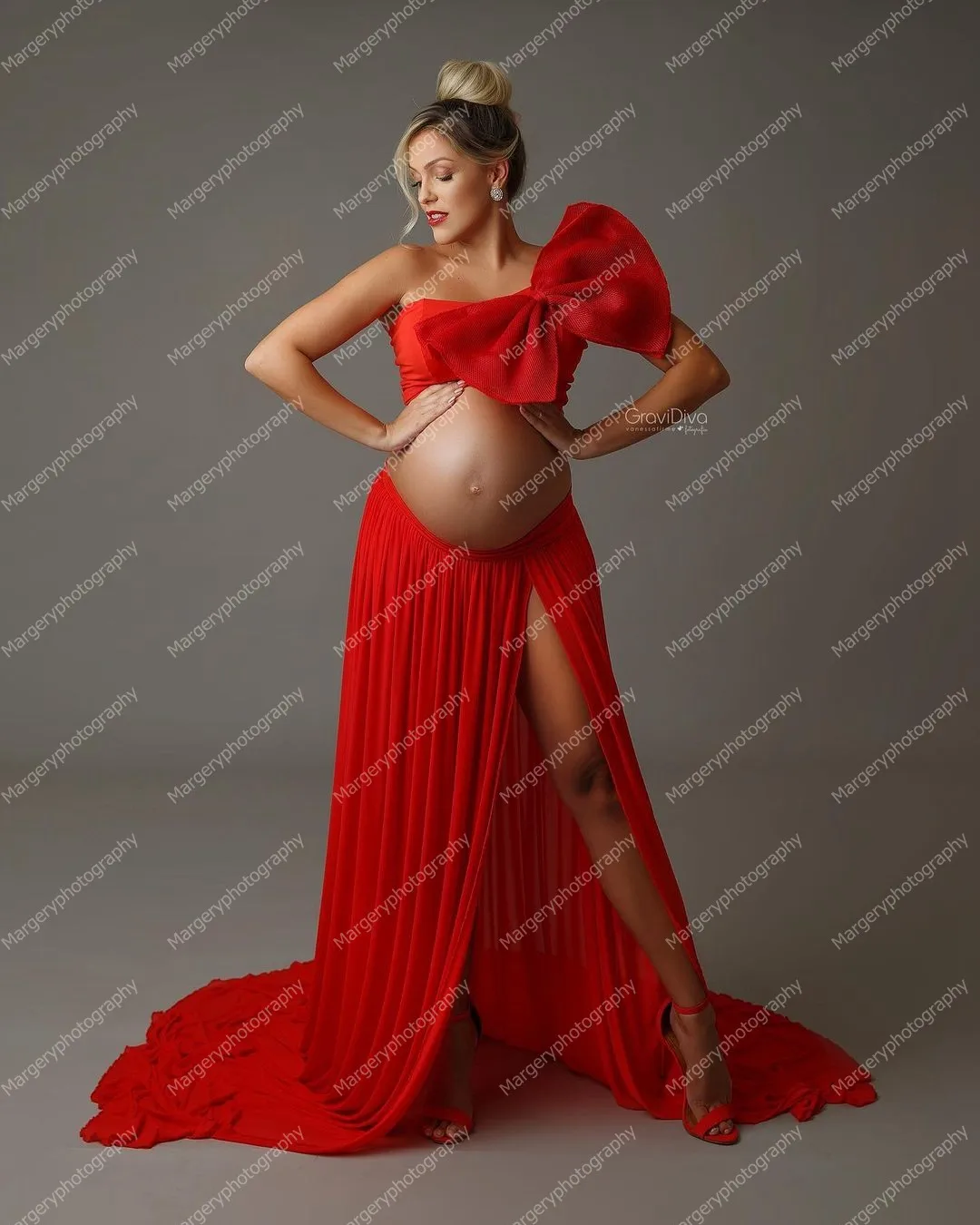Классические красные тюлевые платья для беременных халаты с поясом ...