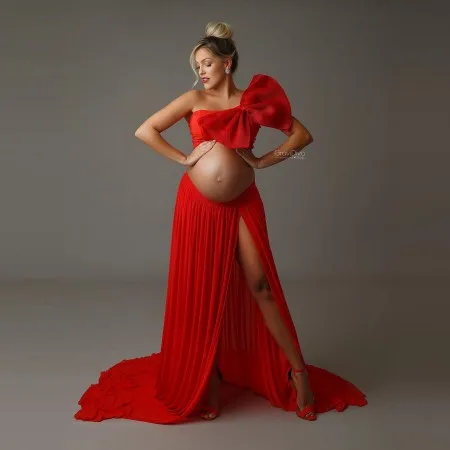 Очаровательные бордовые наряды для фотосессии для беременных с длин...