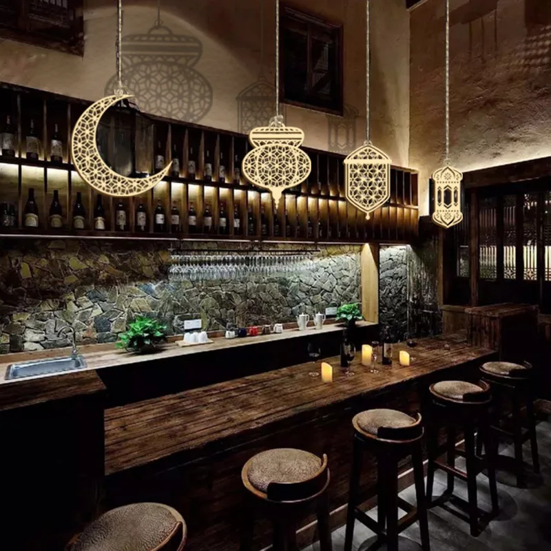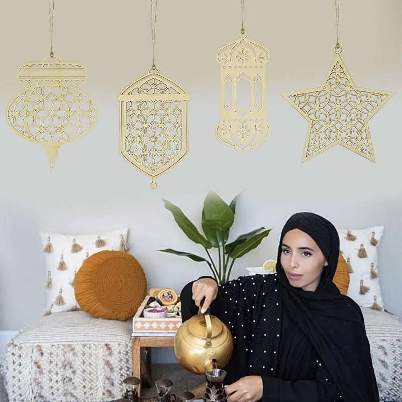 3 шт. ислам Рамадан деревянные аксессуары Луна Звезда ветер фонарь форма деревянная доска знак для дома стены Diy ИД Мубарак украшения