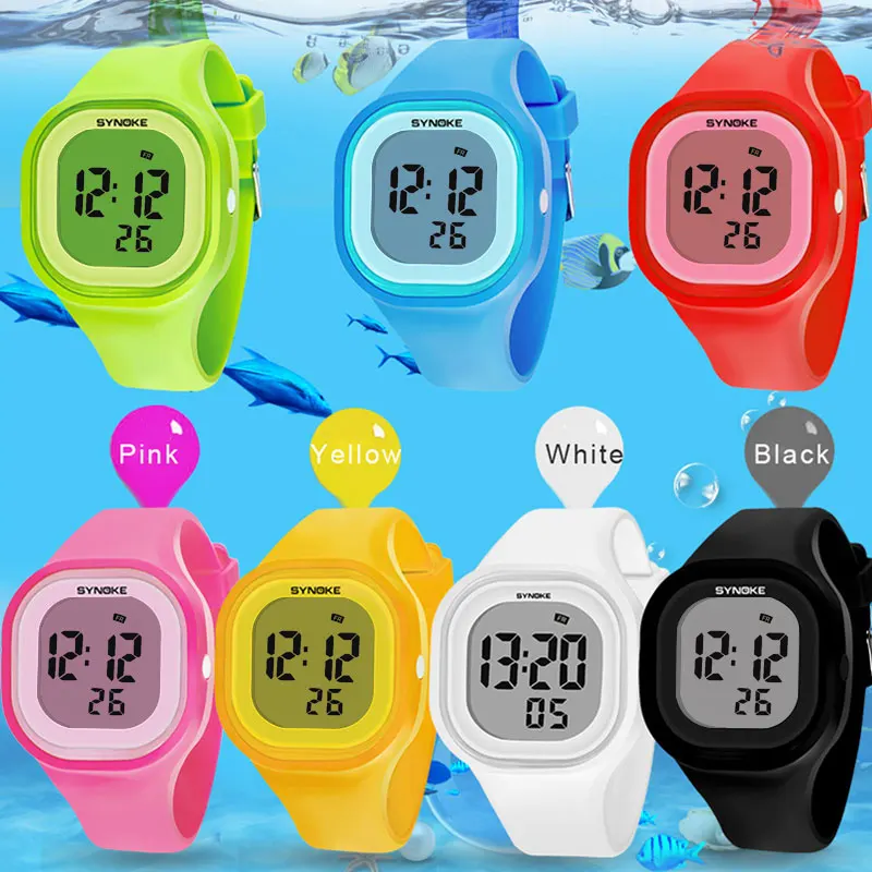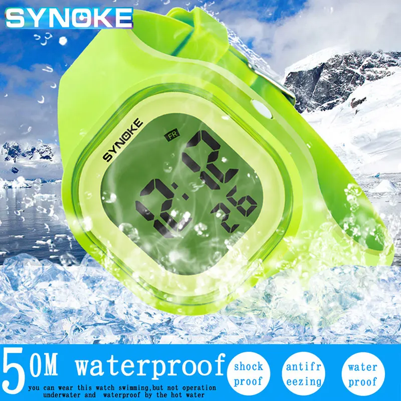 Силиконовые наручные часы SYNOKE, спортивные цифровые часы, водонепроницаемость 50 м, детские часы, светящийся будильник, детские часы