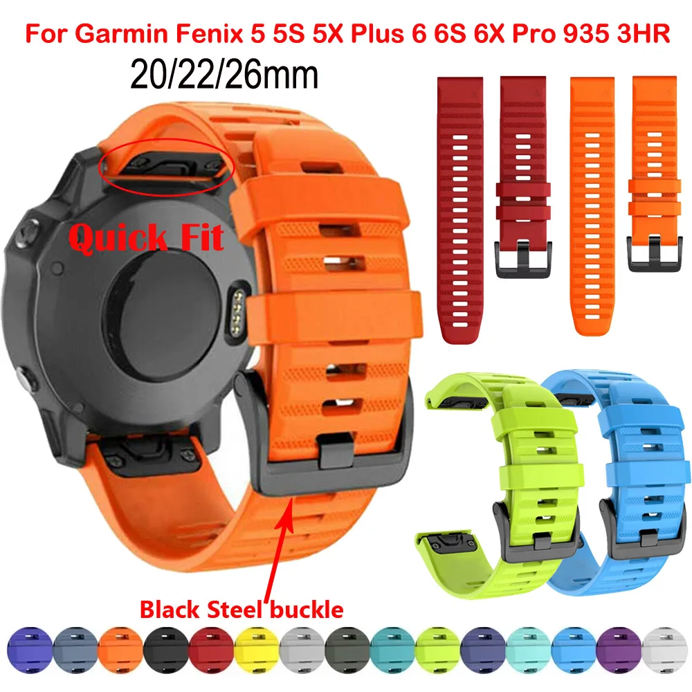 Ремешок для часов Garmin Fenix6, 6S, 6, XPro, 5X, 5S Plus, 3HR 935, силиконовый, быстросъемный