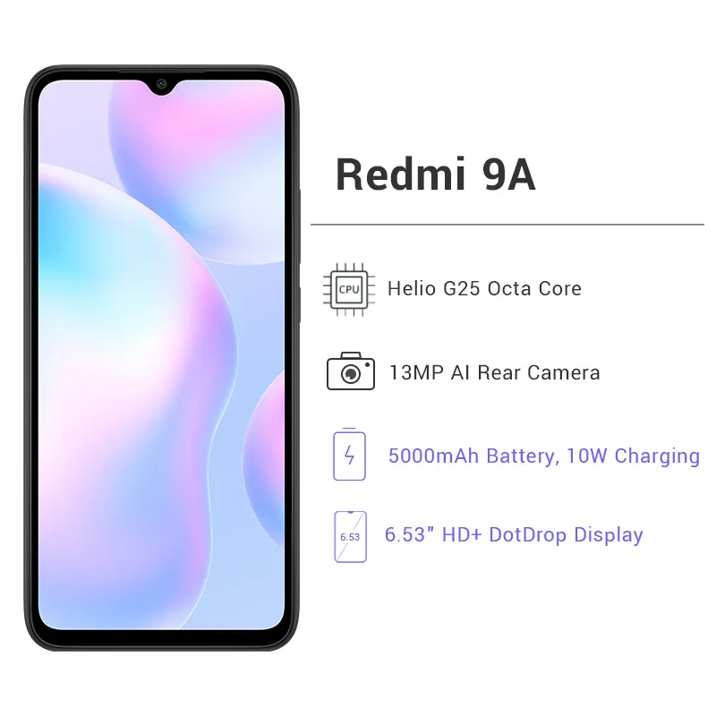 Смартфон Xiaomi Redmi 9A, экран Глобальная версия дюйма, 2 Гб ОЗУ, 32 Гб ПЗУ, Восьмиядерный процессор MTK Helio G25, мобильный телефон мАч, задняя камера 13 МП, 6,53 дюйма