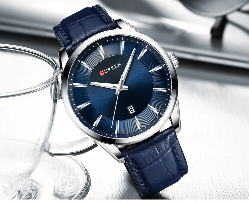 CURREN Кварцевые часы для мужчин кожаный ремешок мужские наручные ч...