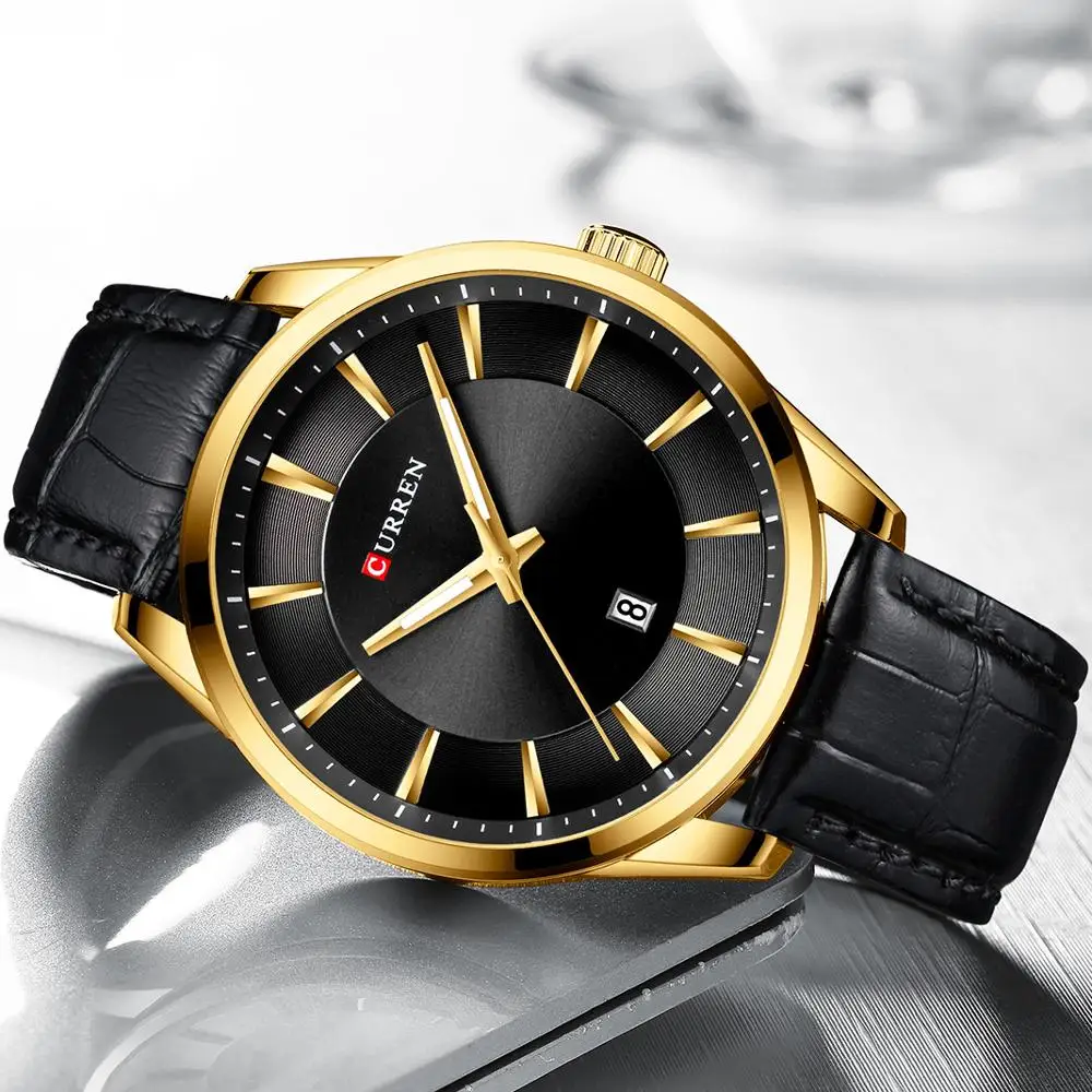 Часы CURREN Мужские наручные кварцевые, модные повседневные люксовые брендовые простые, с кожаным ремешком, черные