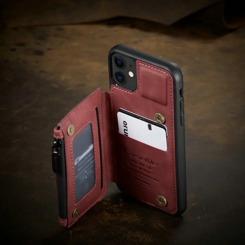 Ретро-чехол CaseMe для iPhone 12 11 Pro Max, кожаный кошелек с отде...