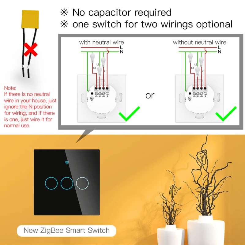 Этот новый дизайн смарт-переключатель с 1/2/3 дополнительно разработан с ZigBee протокол для того, чтобы заменить традиционные переключатели с различные способы контроля. Один переключатель для двух колец опционально (N + L провод/только L провод) и ZigBee концентратор требуется для нормального использования. Теперь одна новая функция смарт-управления (только для N + L провода) к другим смарт-переключателям-это приложение addedinto smart Life/Tuya, и все режимы управления работают без каких-либо помех. Lts дизайн подходит для различных стилей украшения с его лучшим значением.