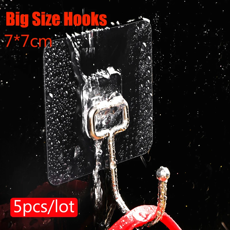 5Pcs Большой размер Прозрачный Прочный самоклеющиеся двери настенные вешалки, крючки, станок и всасывания тяжелой нагрузки стеллаж для выставки товаров Кубка присоски для кухни и ванной