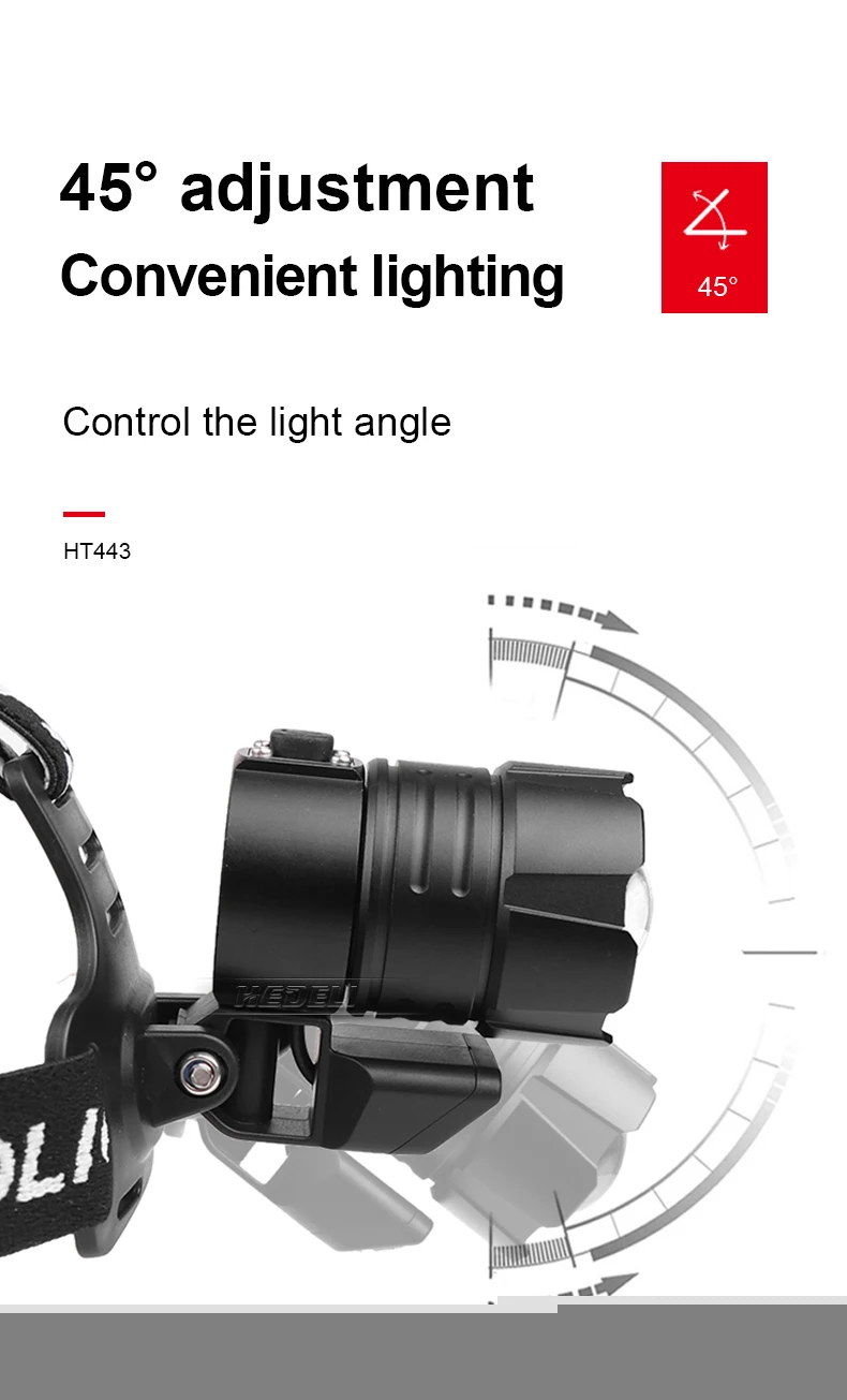 Налобный фонарь XHP120, 450000 люмен, светодиодный, перезаряжаемый,...