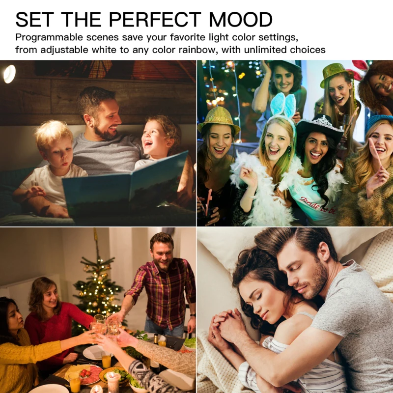 Вы можете установить различные режимы на умный светильник, чтобы соответствовать различным поводам, включая кухню, гостиную, спальню. И наша умная лампа также может быть использована для настольной лампы, кафе, бара, вечерние и т. Д. У нас есть цветовая палитра функций, групповое управление, таймер, Диммируемый режим, режим DIY, режим сцены, энергосбережение...