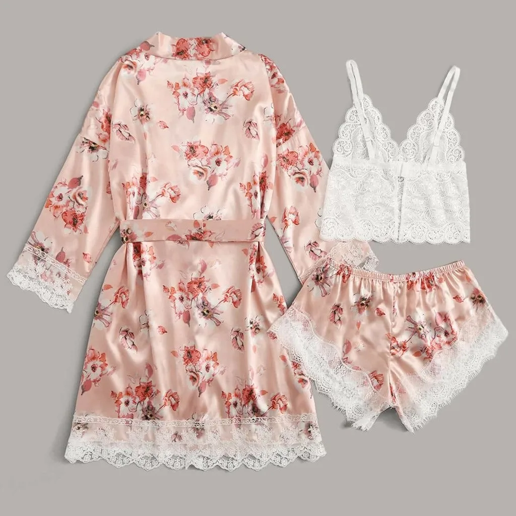 Упаковка: 1 комплект шелковых пижам (1 ночная рубашка 1 кружевной бюстгальтер 1 шорты)