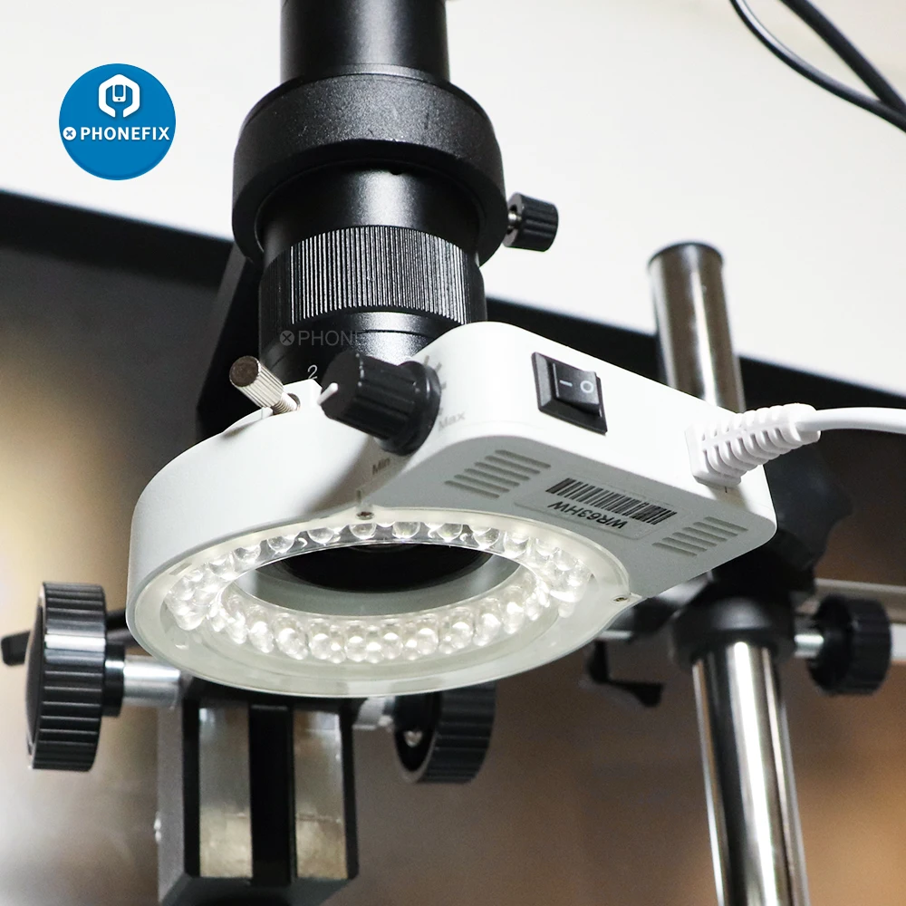 Светодиодный кольцевой светильник PHONEFIX 100-240 В переменного тока с регулируемым микроскопом, светильник с регулировкой интенсивности 0-100% светодиодный круглый светильник для тринокулярного стереомикроскопа, AV 100-240 в источник питания, специальный светодиодный кольцевой светильник микроскопа.