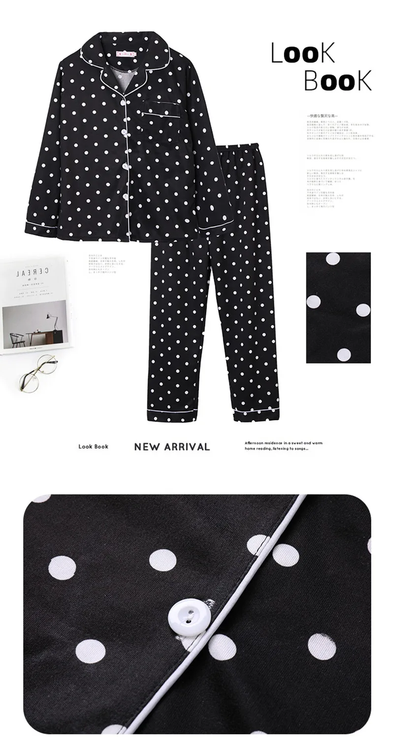 Домашняя одежда большого размера, пижама для девочек, весенний кардиган в горошек, мягкая одежда для сна, женские брюки с отворотами и длинным рукавом, домашняя одежда