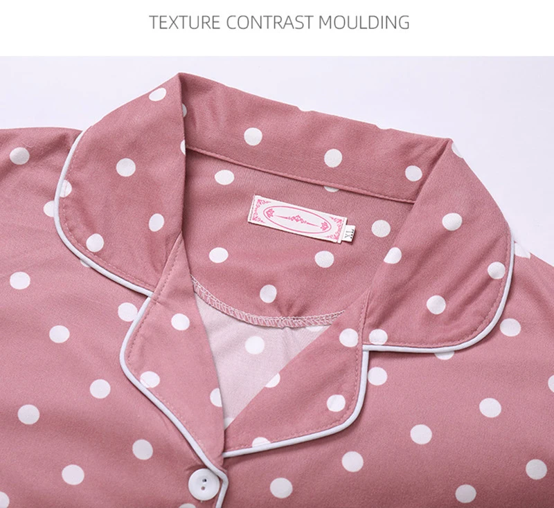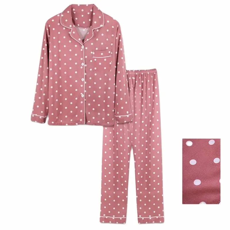 Домашняя одежда большого размера, пижама для девочек, весенний кардиган в горошек, мягкая одежда для сна, женские брюки с отворотом и длинными рукавами, домашняя одежда