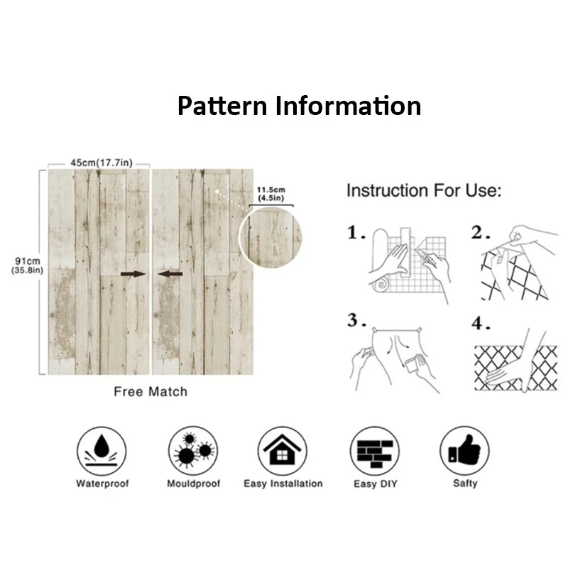 Материал: качественные водонепроницаемые обои из ПВХМетрический Размер:(Д) 1 м * (Ш) 45 см = рулон 0,45 квадратных метров(Д) 3 м * (Ш) 45 см = рулон 1,35 квадратных метров(Д) 6 м * (Ш) 45 см = рулон 2,7 квадратных метровИмперский Размер:(Д) 4,82 фута * (Ш) фута = квадратных футов рулон(Д) 14,46 фута * (Ш) фута = квадратных футов рулон(Д) 28,91 фута * (Ш) фута = квадратных футов рулонОсобенности: самоклеящийся (на дне есть клей, просто снимите и приклейте), водонепроницаемый, съемныйФункция: обновление мебели, Украшение стен, водонепроницаемость, ПыленепроницаемостьЦвет: как показано на рисунке