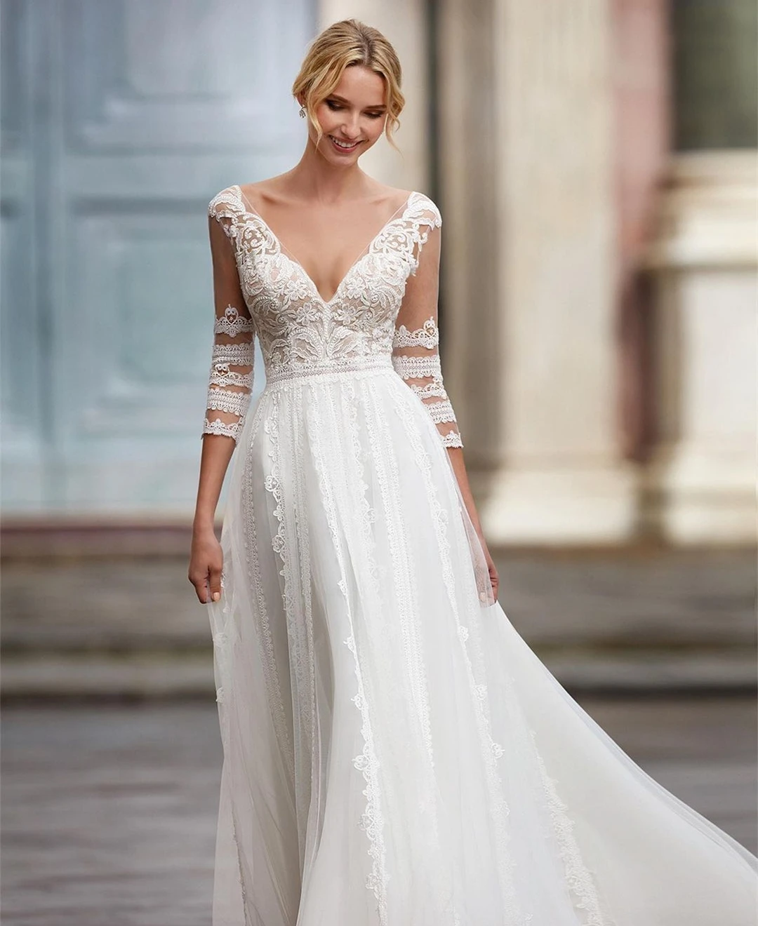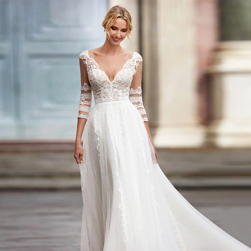 Длинные свадебные платья а-силуэта в богемном стиле, женское пляжное платье невесты с V-образным вырезом, платье невесты в стиле бохо с рукавом 34, Robe De Mariee