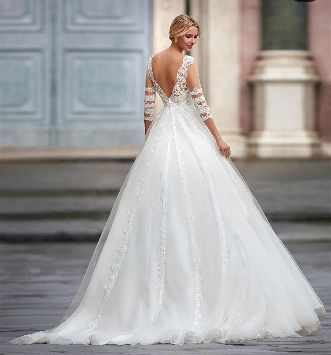 Бальное платье принцессы кружевные свадебные платья с длинным рукав...