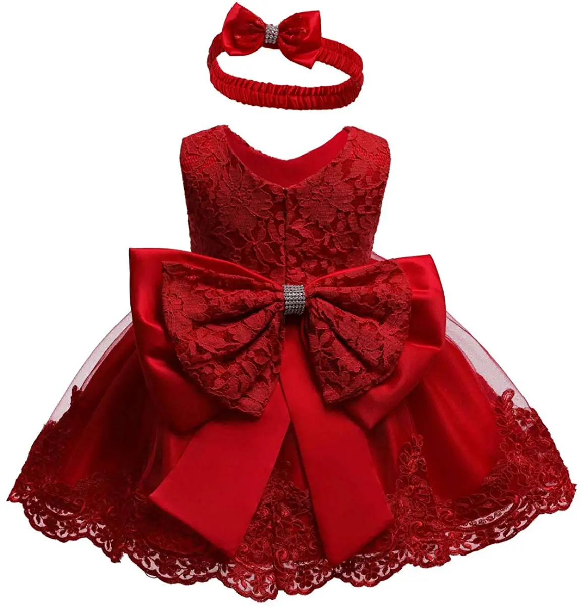 Летняя одежда для малышей Новая детская Платья принцессы для девочек; Кружевные Свадебная вечеринка; Официальная одежда для детей + повязка на голову, на возраст от 0 до 24 месяцев