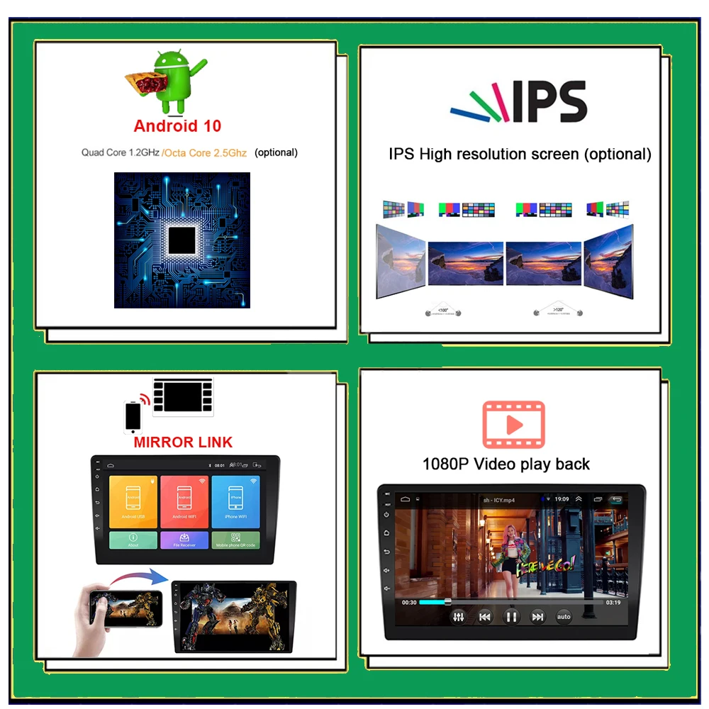 9 дюймов 2.5D емкостный Экран + Quad /Octa Core 1,2/2,5 ГГц Процессор + 2 Гб (4 Гб опционально) флэш-память + 32 ГБ памяти (64/128 Гб опционально) + встроенный Wifi (4G сеть опционально) + gps-навигация (бесплатное обновление карты Поддержка) + управление рулевым колесом + зеркальная связь + Bluetooth + Встроенный микрофон + FM/AM + RDS (опционально) + Поддержка USB ADAS DVR Функция + Европейская DAB функция + 1080P Vedio Play + HD 1024*600 + Система контроля давления в шинах > Поддержка ЯзыковРусский, английский, испанский, итальянский, французский, чешский, арабский, немецкий, иврит, китайский, эстонский, польский, филиппинский, финский, корейский, голландский, хорватский, латышский, литовский, румынский, более 50 видов языков: Норвежский, португальский, японский, шведский, тайский, турецкий, украинский, венгерский, словацкий, датский, словенский. > 24H * 7 поддержка обслуживанияВ компании Nevegetor мы уделяем особое внимание обслуживанию наших уважаемых клиентов, ориентированным на обслуживание, добросовестным и разумным ценам для нашей бизнес-философии. Мы с нетерпением ждем возможности ведения бизнеса с взаимовыгодным подходом.