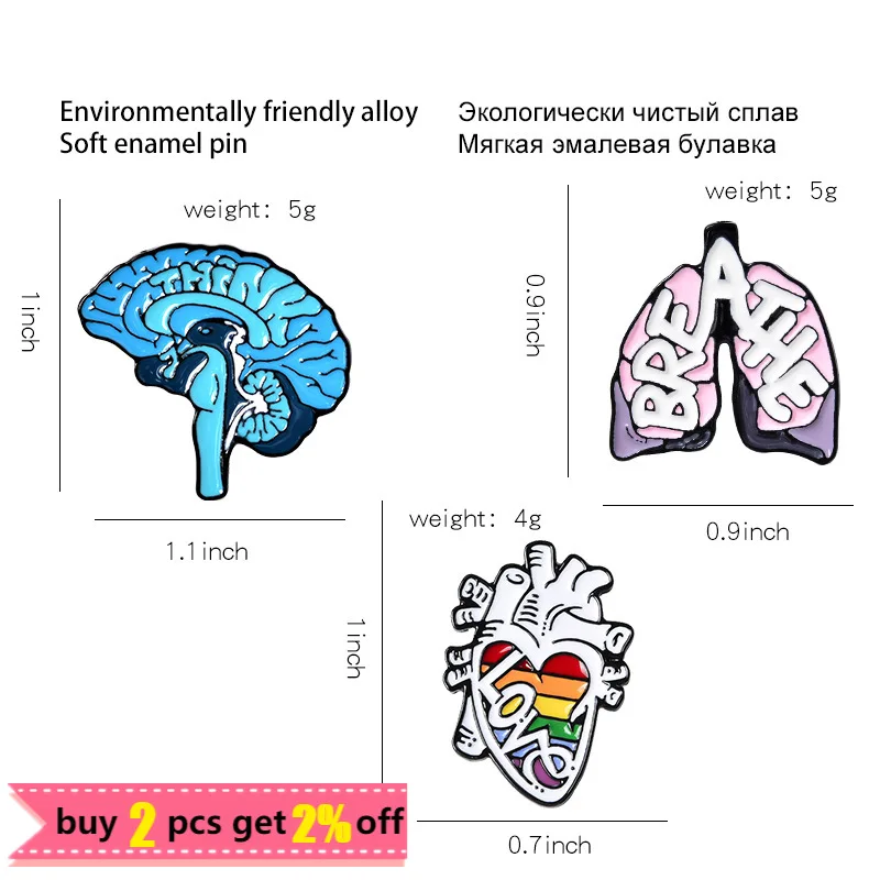 Эмалированные булавки для легких Анатомия сердца Brain, оптовая продажа, медицинский значок для сумки Мультяшные броши, подарок врачу другу