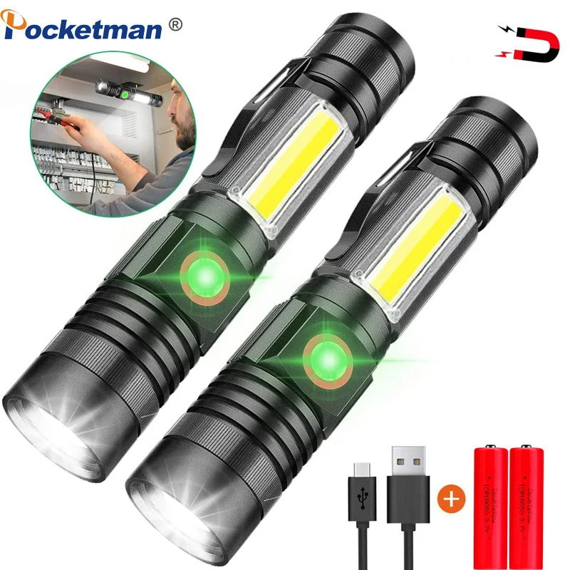 USB Перезаряжаемый фонарик супер яркий Магнитный светодиодный фонарь 8000лм с Cob Sidelight Карманный водонепроницаемый зажим, масштабируемый лучший фонарик для кемпинга