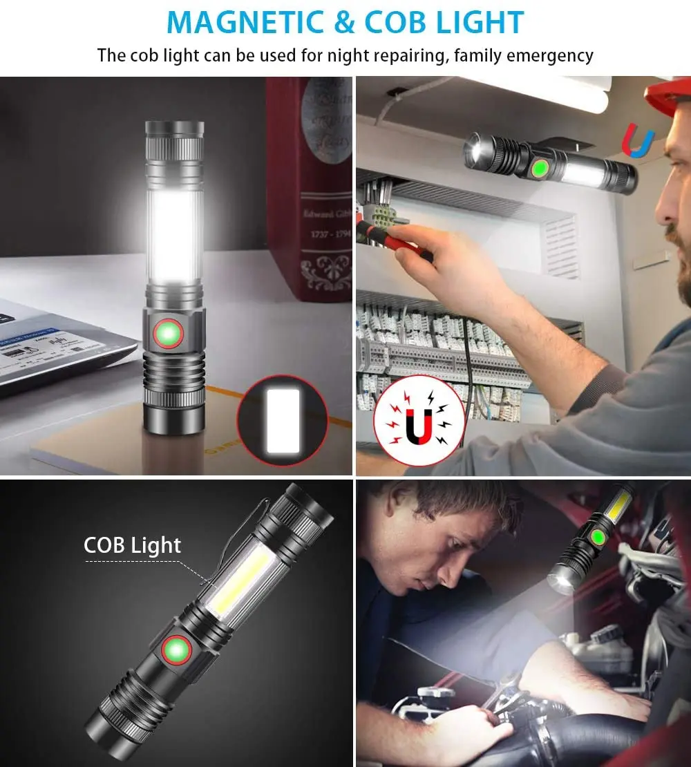 Strong Magnetic and COB Side LightsUSB Rechargeable Flashlight