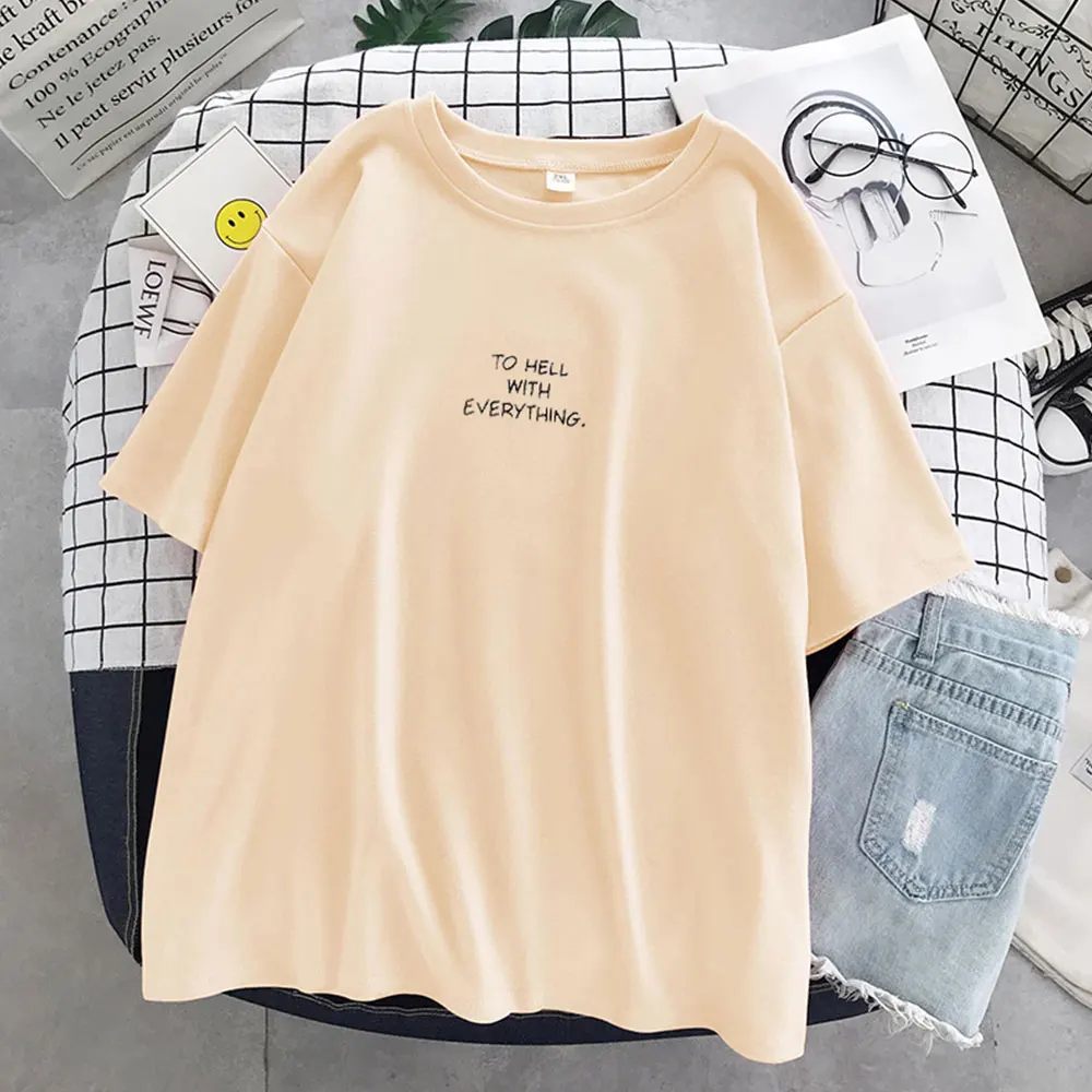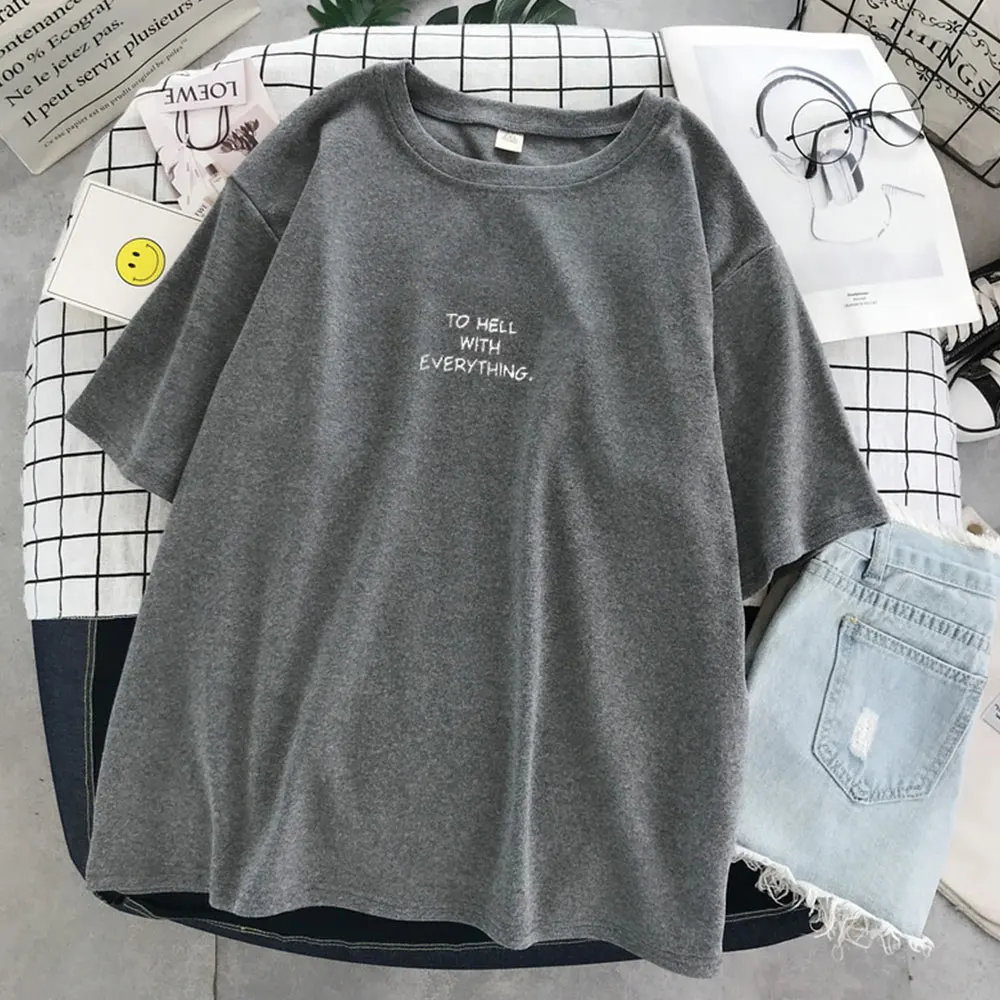 Футболка женская с коротким рукавом, свободная простая универсальная рубашка с надписью в Корейском стиле, в стиле Харадзюку, для отдыха