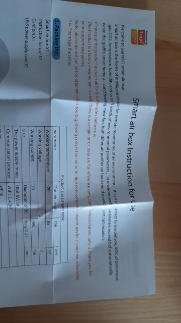 Диапазон обнаружения smart air box: формальдегид, газ VOC, CO2, температура, влажность