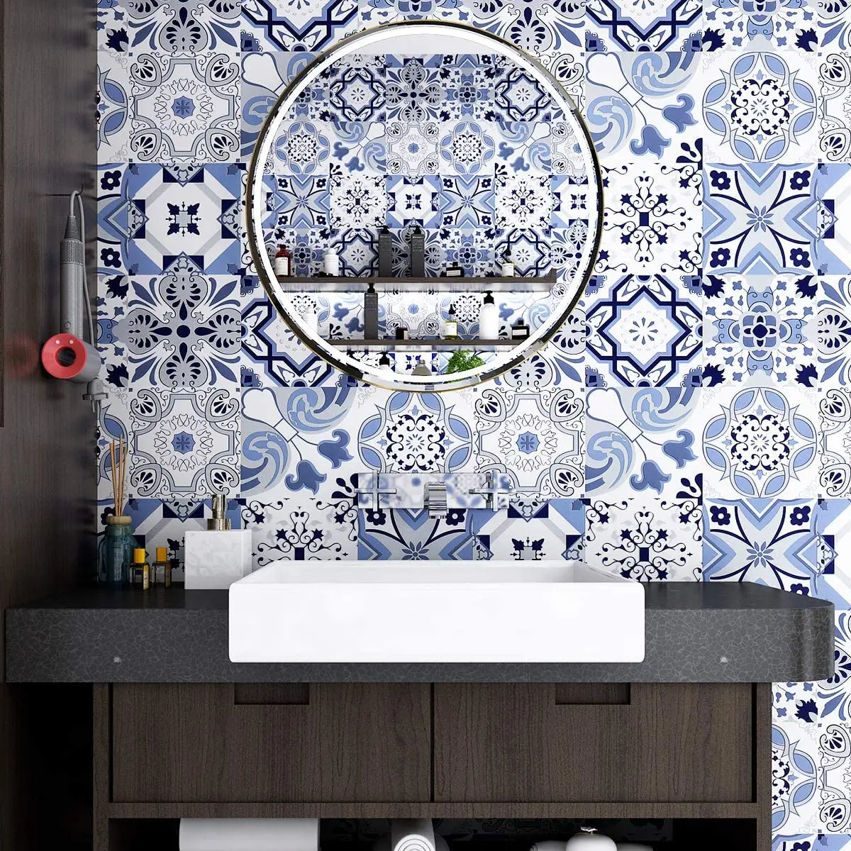 Домашняя самоклеящаяся бумага для стен, настенная бумага плитка с марокканским узором, водонепроницаемая самоклеящаяся, со съемной синей плитой